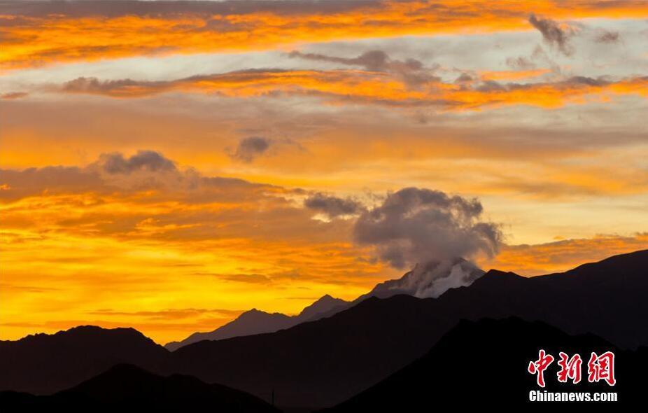 阳光透过云层照射到连绵起伏的山峦,勾勒出一幅幅气势磅礴的地貌风光。王将 摄