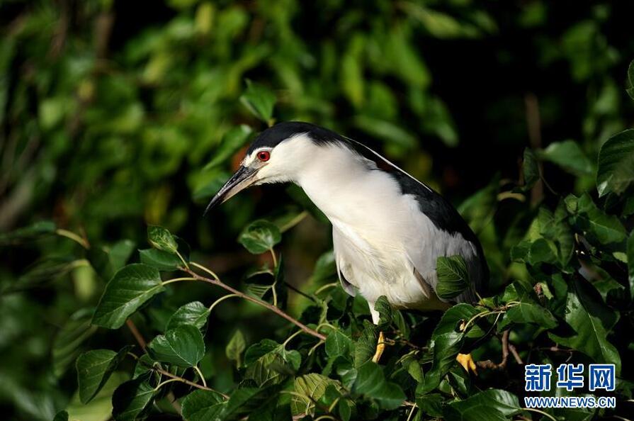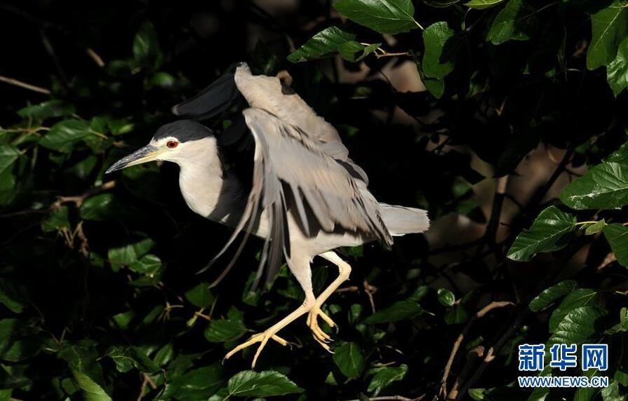 这是8月3日在上海动物园拍摄的夜鹭。新华社记者 张建松 摄
