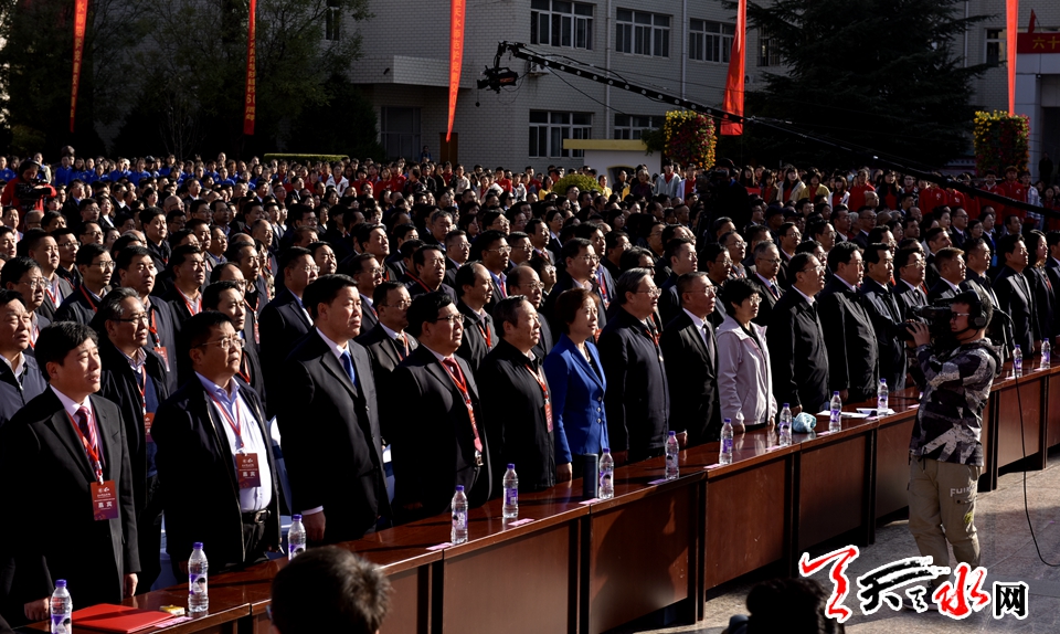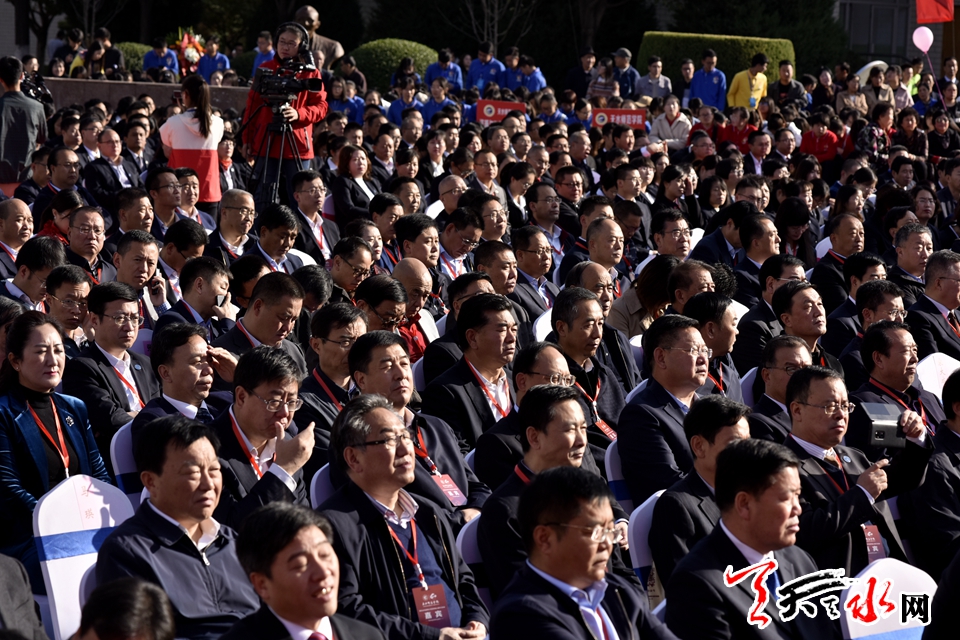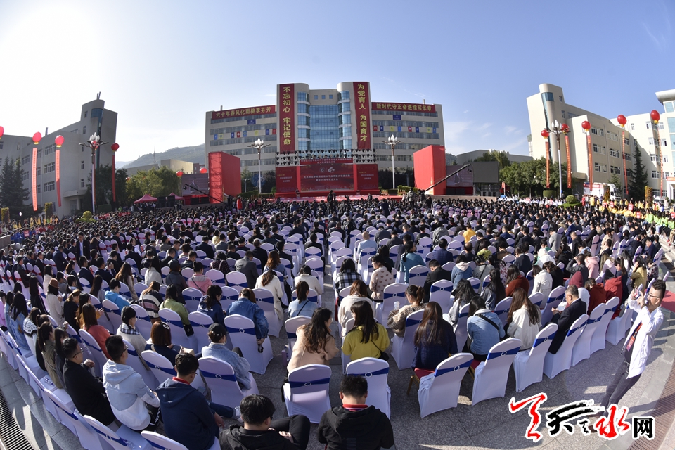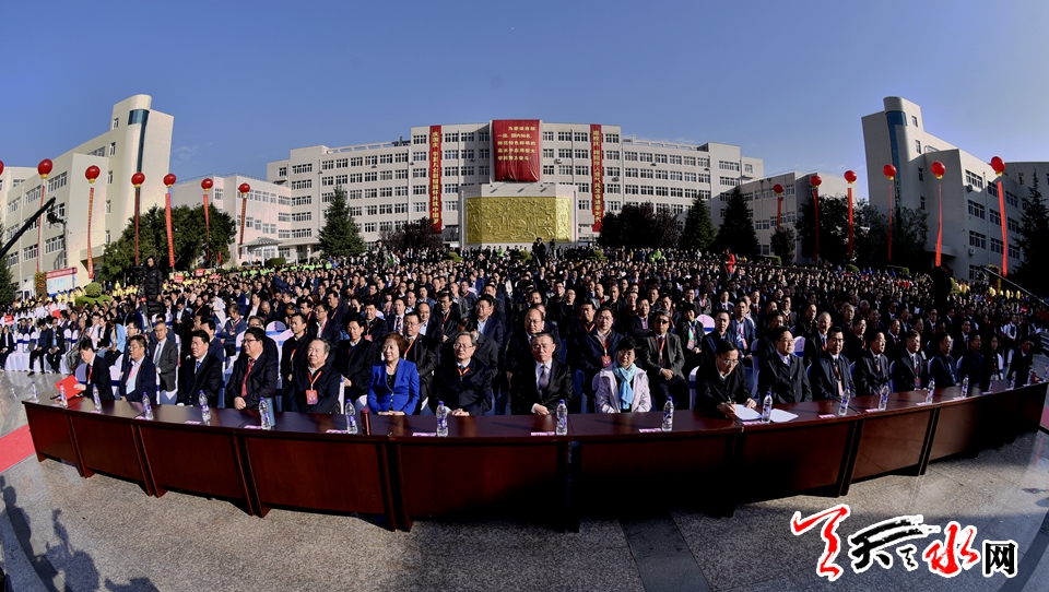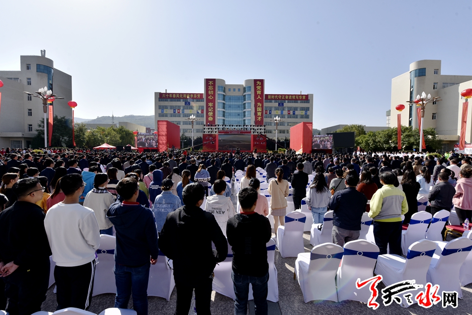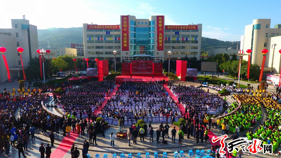 天天天水网讯【全媒体记者郝勤学 周文涛 何永德 杨旭】六十载守正奋进,一甲子春华秋实。10月12日上午,天水师范学院推进高水平应用型大学建设暨建校60周年纪念大会在天水师范学院文化广场隆重举行。