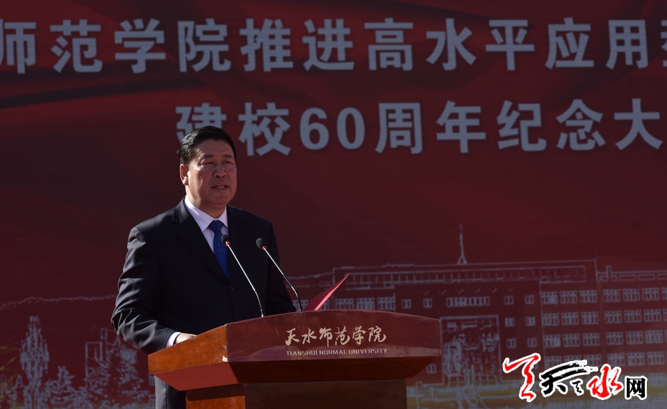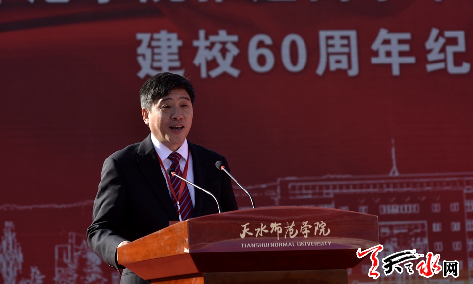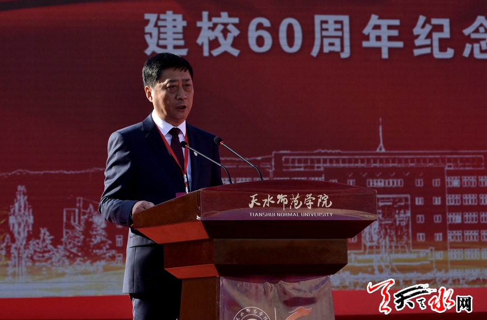 李沛兴代表省委、省政府向天水师范学院建校60周年表示热烈的祝贺,向全体师生、员工及广大校友,致以诚挚的问候和美好的祝愿。他说,天水师院建校60年来,始终恪守“明德、新民、至善”的校训,弘扬“困境中求生存,奋斗中谋发展”的精神,注重思政育人,注重文化育人,注重产教融合,注重学生综合素质提高,先后培养了一大批高素质应用型人才,为甘肃经济社会发展,尤其是基础教育事业作出了不可替代的贡献。希望天水师范学院以60周年校庆为契机,以习近平新时代中国特色社会主义思想为指导,深入学习贯彻习近平总书记视察甘肃重要讲话和指示精神,全面加强党的领导,把立德树人作为根本任务,坚持扎根陇东南,坚守育人初心,高举师范大旗,全面振兴本科教育,积极发展研究生教育,为甘肃省基础教育培养更多优秀师资;坚持加强科技创新,主动服务国家战略和地方需求,在创新驱动助推区域经济发展和脱贫攻坚方面做出更大贡献;坚持师德懿范,筑魂育人,践行“三传播、三塑造”要求,努力培养堪当“富民兴陇”重任的社会主义建设者和接班人;坚持走应用型大学发展之路,瞄准“西部一流、国内知名”方向,打好“深化改革、转型发展、人才队伍建设、办学条件改善”四场攻坚战,大力推进教学、科研、学科等重点领域综合改革,不断提升办学水平,建好师范特色鲜明的高水平应用型大学。