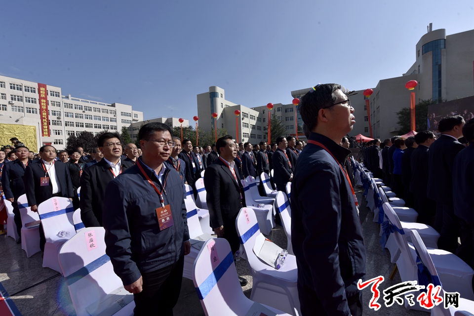 省人大常委会教科文卫工作委员会主任、省委“不忘初心、牢记使命”主题教育第六巡回指导组组长范鹏,省人大常委会民族侨务委员会主任陈保平,省教育厅厅长王海燕,陕西省社科联主席甘晖,省政府副秘书长王锋 ,教育部学校规划建设发展中心创新发展处副处长王丽萍 ,天水市人大常委会主任蒋晓强,天水市委副书记、市长王军,天水市政协主席张明泰等出席纪念大会。天水师范学院党委书记李正元主持纪念大会。