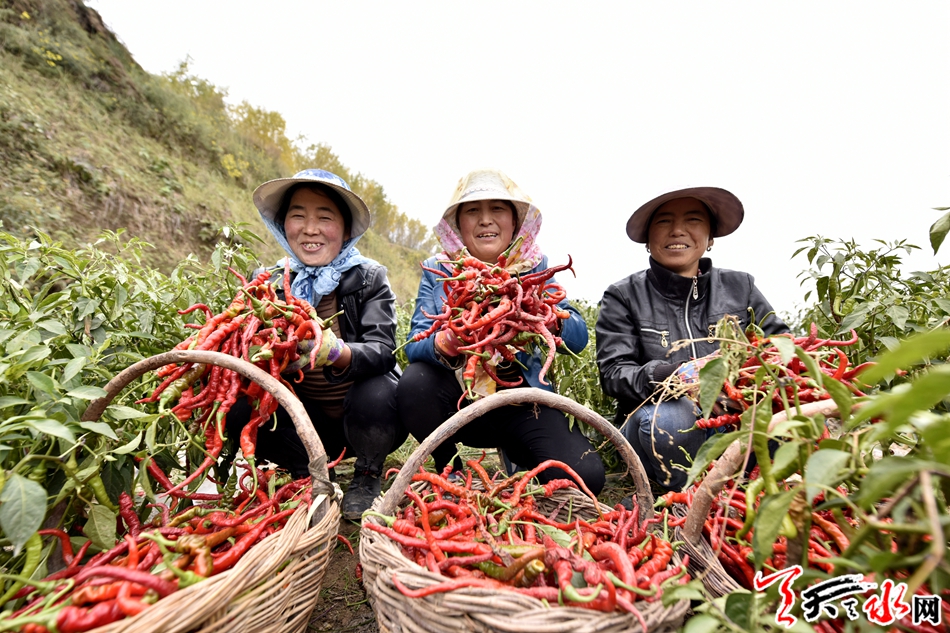 初秋季节,走在甘谷县的山间谷地,到处都是辣椒绘成的红绿相间的美丽画面。在甘谷县金山镇吕家湾村,记者看到低矮粗壮的辣椒苗上,一个个或红或绿的辣椒挂在枝头,鲜嫩诱人,正在采收辣椒的农民们脸上洋溢着丰收的喜悦。