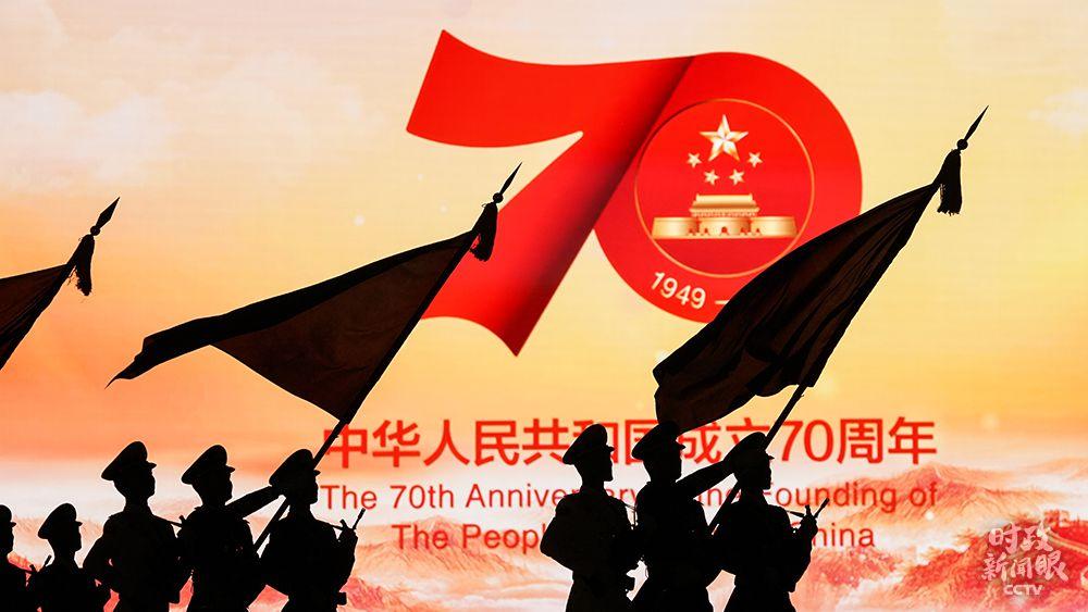 2019年国庆当天,仪仗队走过天安门广场东侧的巨大荧屏。(总台国广记者李晋拍摄)