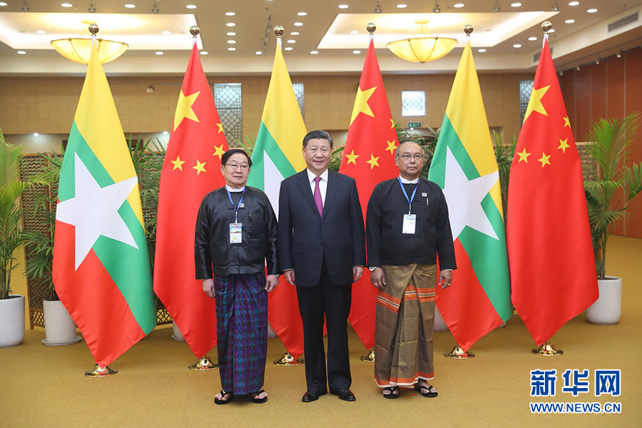 当晚,习近平同缅甸联邦议会议长兼人民院议长蒂昆密和民族院议长曼温凯丹进行了友好交谈,并和缅甸主要政党领导人集体合影留念。