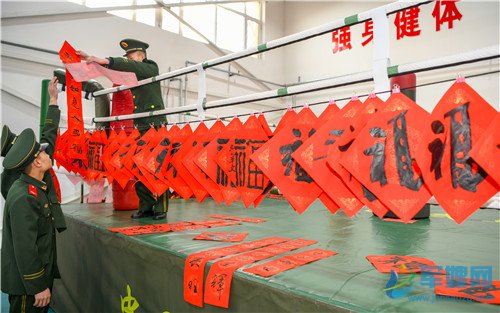 1月20日,官兵展示对联。