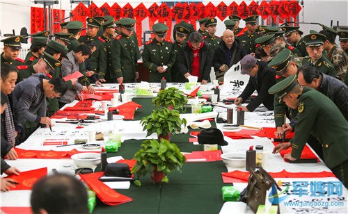 1月20日,书法家和官兵合影留念。
