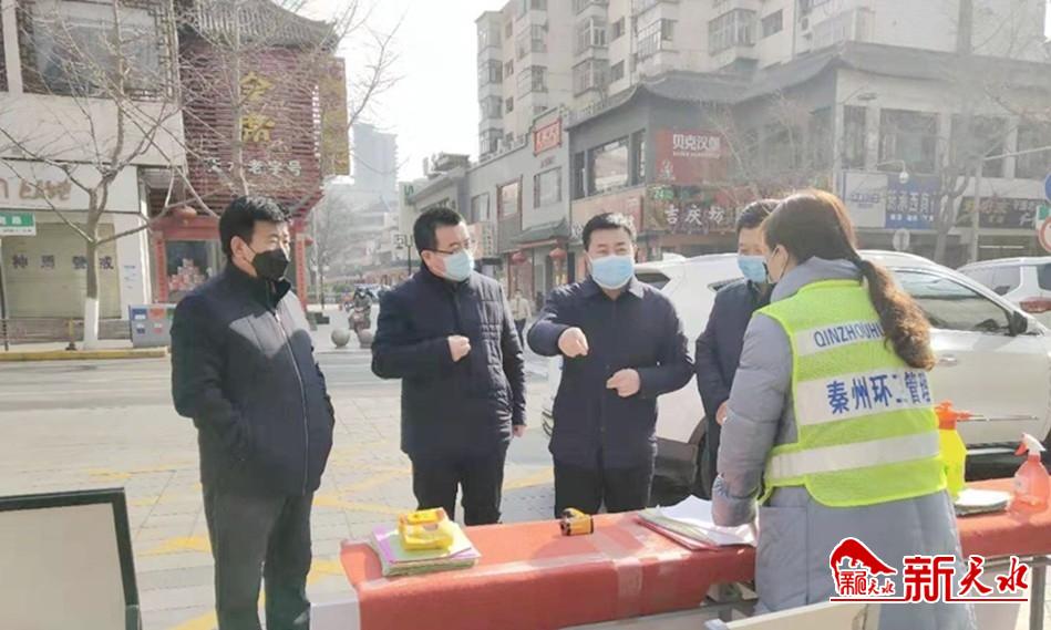 新天水讯 据秦州区融媒体中心消息,2月9日上午,秦州区委常委、组织部部长赵虎生,区政府副区长罗增芳带领区政府办、房管局、环卫中心、物管办等部门负责人,就城区内部分物业小区及三无小区疫情防控工作进行督查暗访。