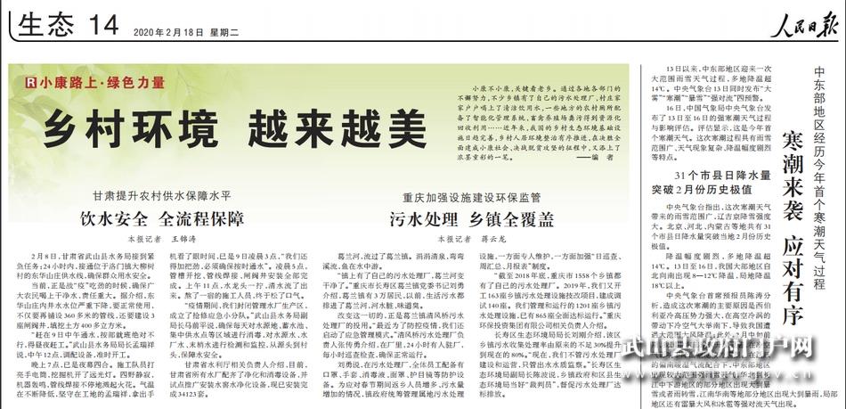 “疫情期间,我们封闭管理水厂生产区,成立了抢修应急小分队。”武山县水务局副局长马前平说,确保每天对水源地、蓄水池、集中供水点等区域进行消毒,对水源水、水厂水、末梢水进行检测和监控,从源头到村头,保障水安全。
