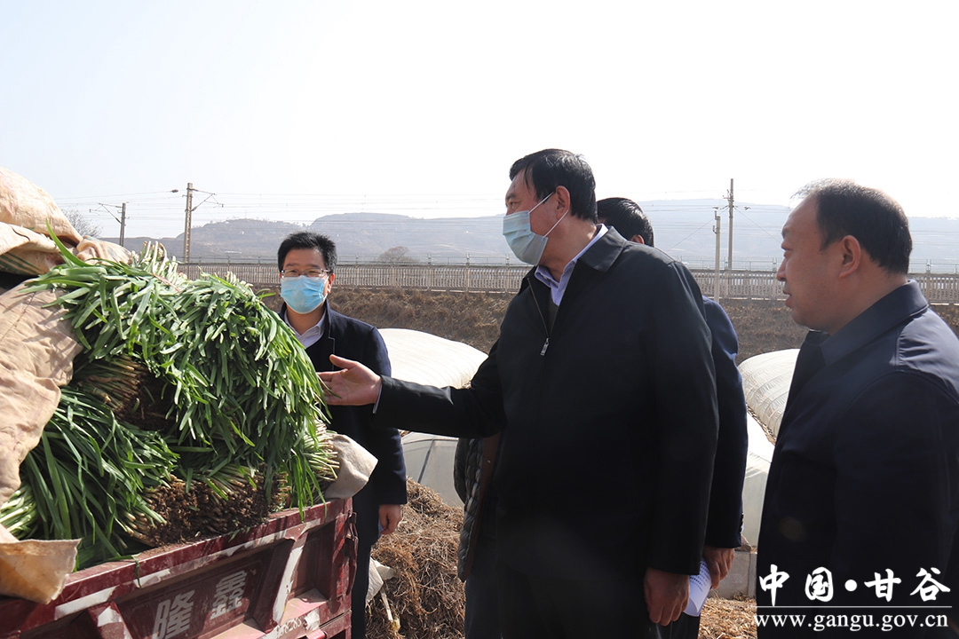 新天水讯 据甘谷县融媒体中心消息,2月21日,天水市政协主席、市委农村工作领导小组常务副组长赵卫东带领市农业农村局、市供销社负责人,到甘谷田间地头实地调研复工复产、蔬菜经销、农资供应等春耕备耕情况。赵卫东强调,当前,正是新冠肺炎疫情防控的特殊时期,也是春耕生产的关键时期。甘谷县委县政府要提早谋划,在做好疫情防控的同时,扎实抓好春耕备耕工作,科学组织农业生产,确保不误农时农事。县委副书记、县长吴健,县委副书记孟晓龙,副县长杜兴一同调研。