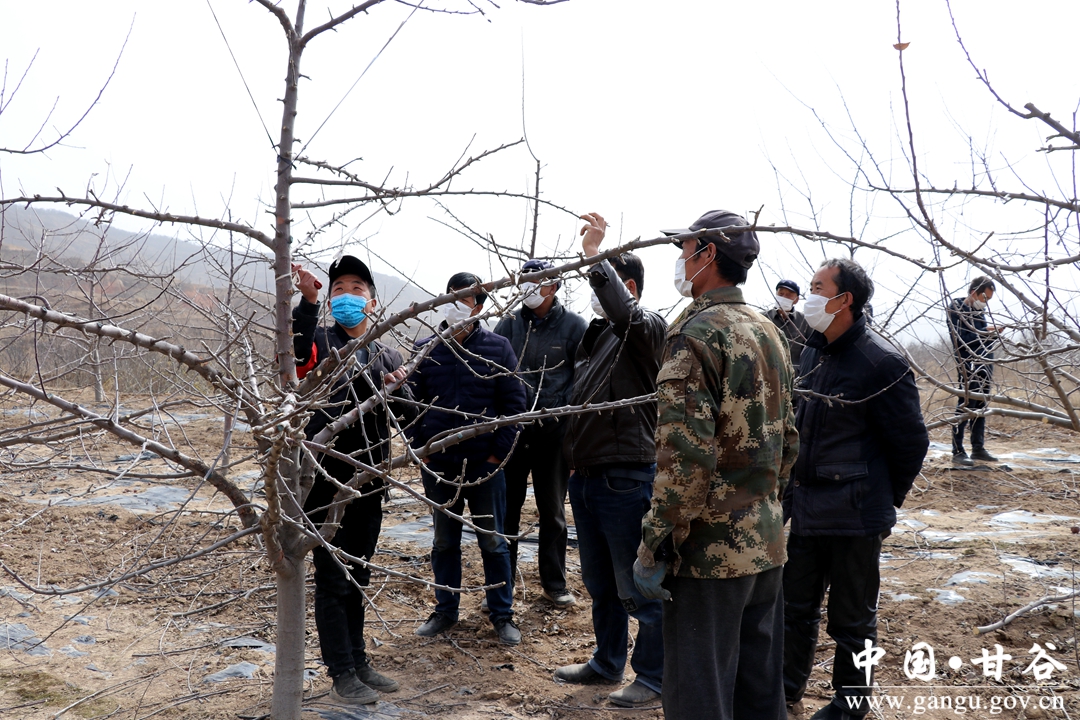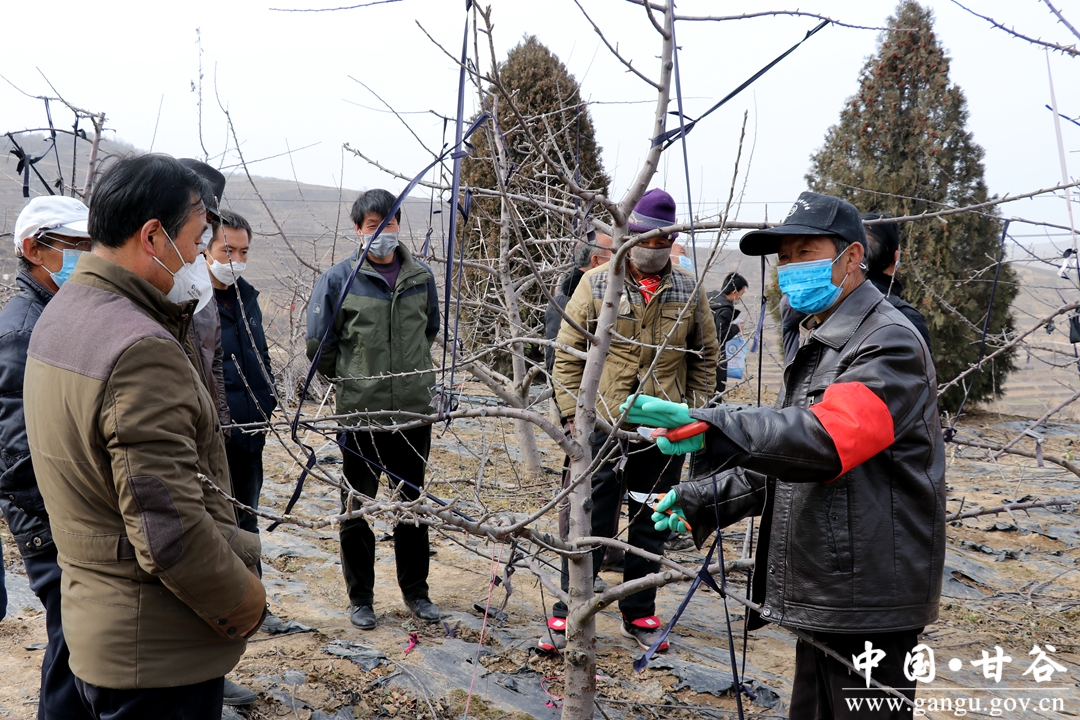 新天水讯 据甘谷县融媒体中心消息,疫情防控发起总攻,农业生产势在必行,近日,记者在大石镇冰滩蒲树村、南山村等田间地头看到一场场与往年不太一样的场景,带着口罩认真聆听果树专家的讲解的果农成了田间地头一道特别的风景。