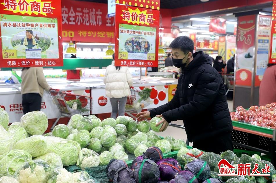 新天水讯 据清水县融媒体中心消息,2月21日,记者走访了清水县各大超市及蔬菜市场,看到各超市市场商品齐全,供应充足,经营有序,价格平稳,日常生活所需的米、面、油及新鲜蔬菜、水果等商品均有大量陈列,购买秩序井然。