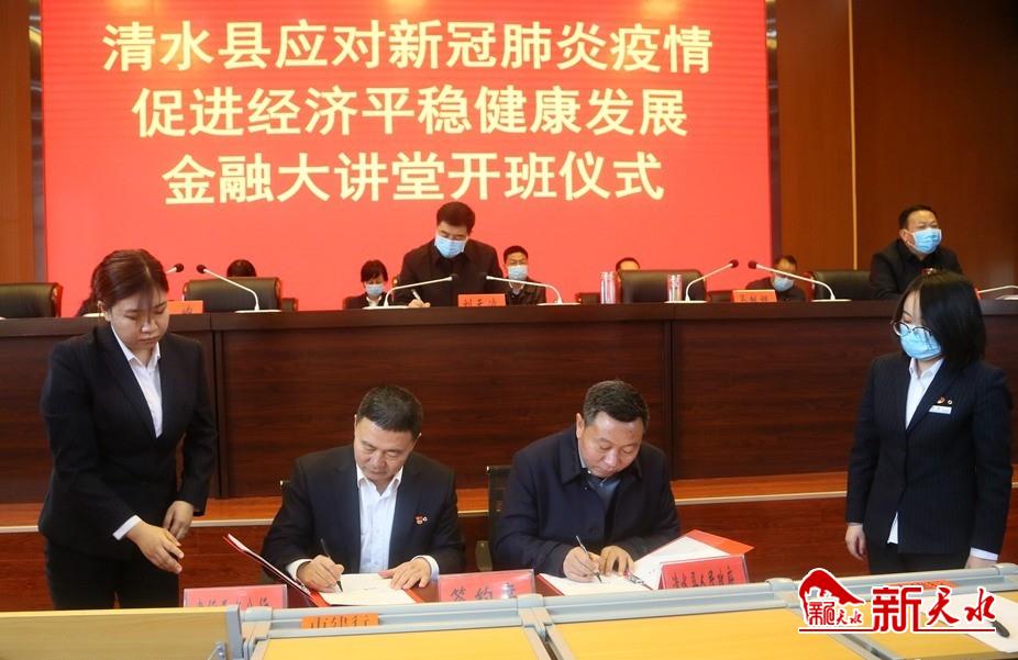 新天水讯 据清水县融媒体中心消息 2月29日,在清水县应对新冠肺炎疫情促进经济平稳健康发展金融大讲堂培训班开班仪式上,建行天水分行与清水县政府签订战略合作协议。