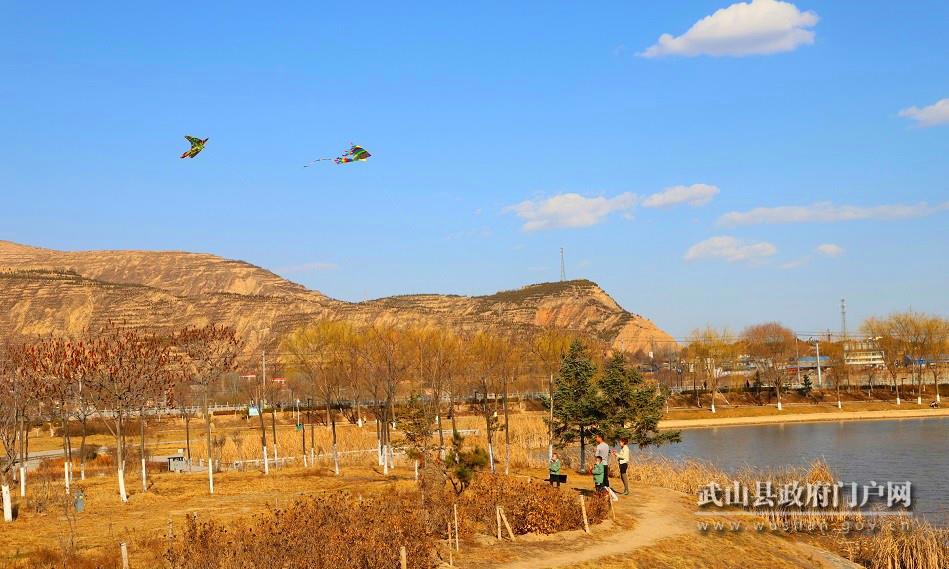 在县城,鸳鸯湖公园,工人正在浇灌树木,打扫卫生,辛勤的园丁保洁着美丽家园,成为市民踏青游玩好去处。在明媚的春光里,风筝在蓝天上遨游,播撒希望的种子。