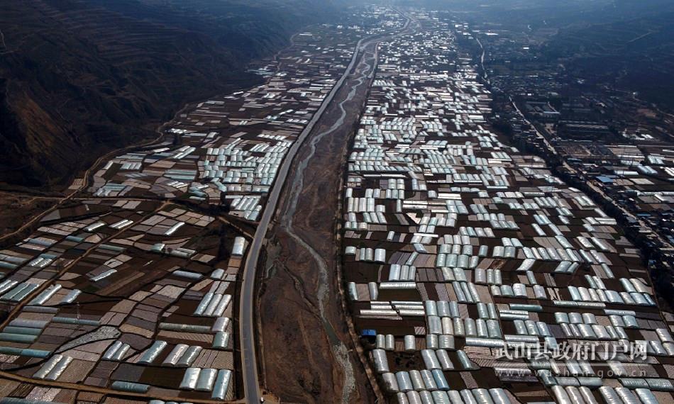 得益于此,大南河河水一直源洁流清,沿岸农田用水水质达标,郭庄村村民春灌用水直接就用大南河河水。大南河流域蔬菜种植历史悠久,是武山县设施蔬菜的发祥地,主产的武山韭菜、武山蒜苗、武山莴笋、武山豆角等蔬菜是国家A级绿色产品、注册为国家地理标志证明商标。水润万田绿。据统计,大南河流域仅洛门镇涉及15个行政村3.2万人,总耕地面积2.6万亩,蔬菜种植面积达到1.5万多亩,产量6万吨左右,是全县重要的设施蔬菜和高原夏菜生产基地。大南河设施蔬菜成为武山蔬菜的一块金腰带。