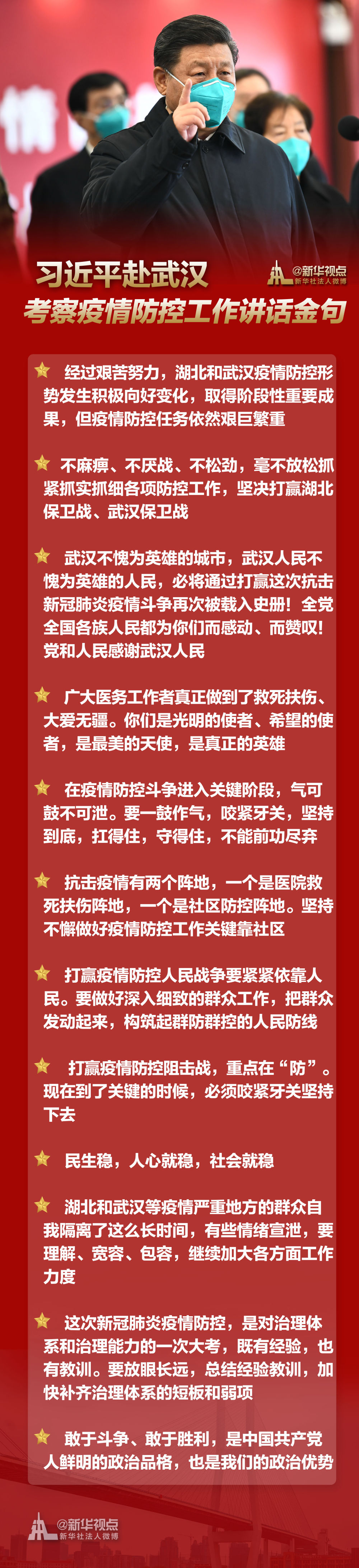 习近平赴武汉考察疫情防控工作讲话金句