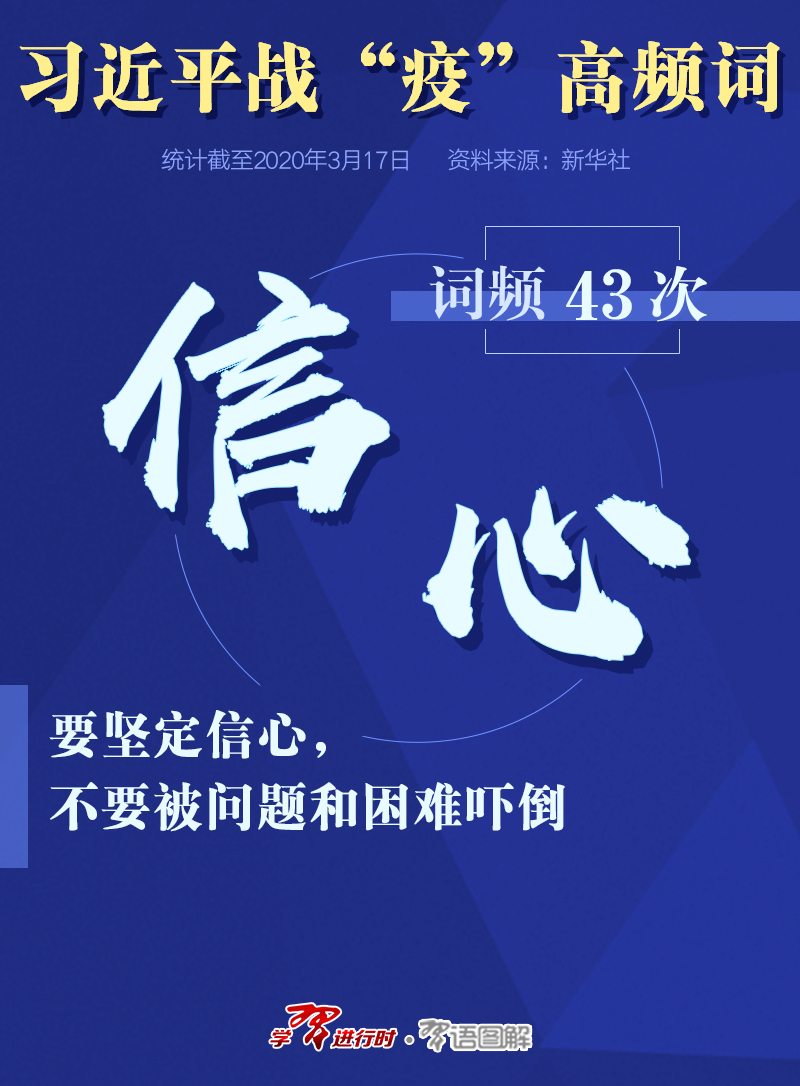 面对疫情,信心比黄金还珍贵。战“疫”期间,习近平不断强调“信心”二字,为大家加油鼓劲。
