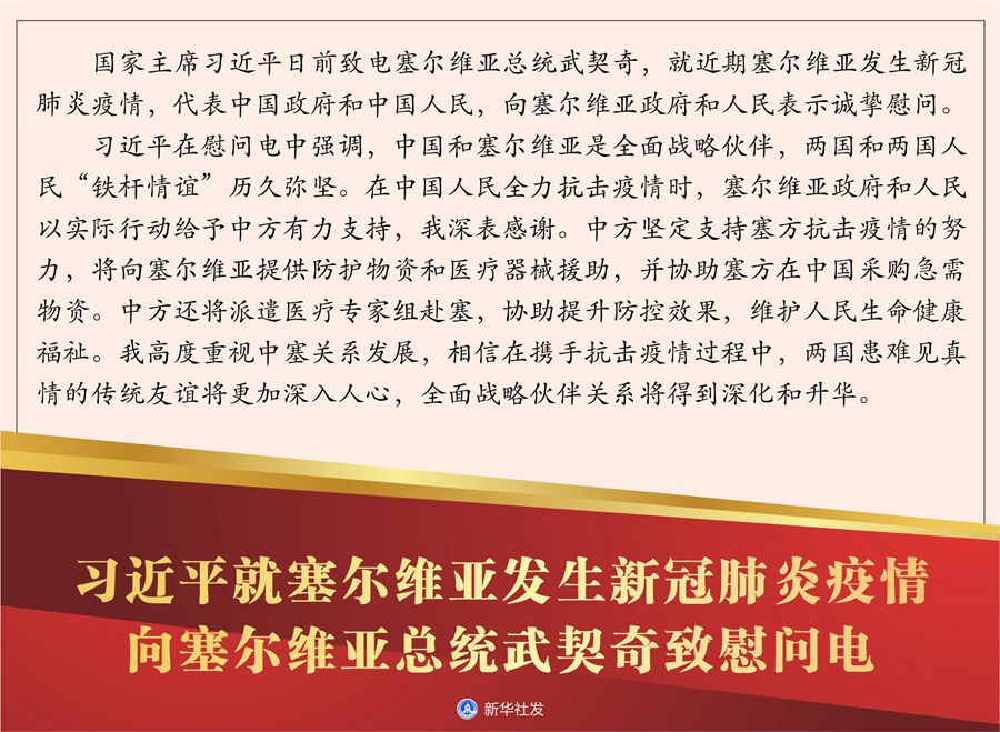 习近平就塞尔维亚发生新冠肺炎疫情向塞尔维亚总统致慰问电