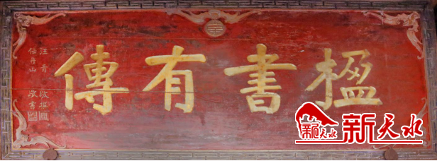 本期赏析南宅子近代匾额:楹书有传。这块匾长218厘米,宽89厘米,红底金字,窄边框,刻不间断回纹,匾心上中部刻蝙蝠衔寿纹,四角各雕一只蝙蝠。落款:汪青敬撰,任丹山敬书,颜体楷书。