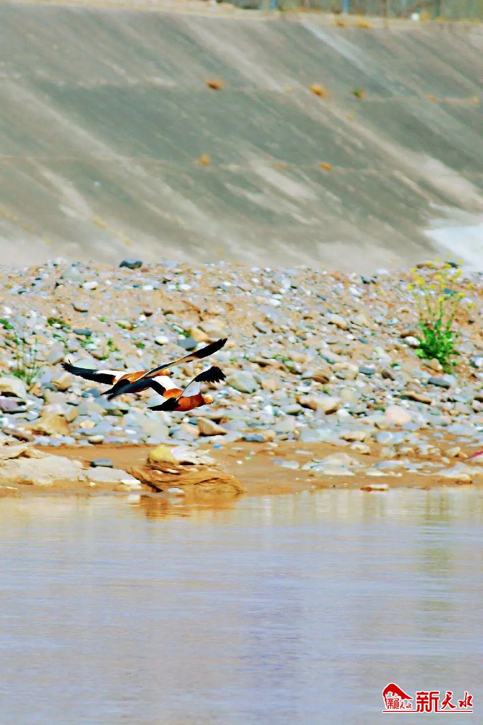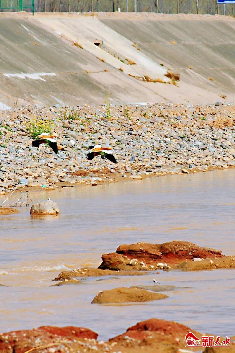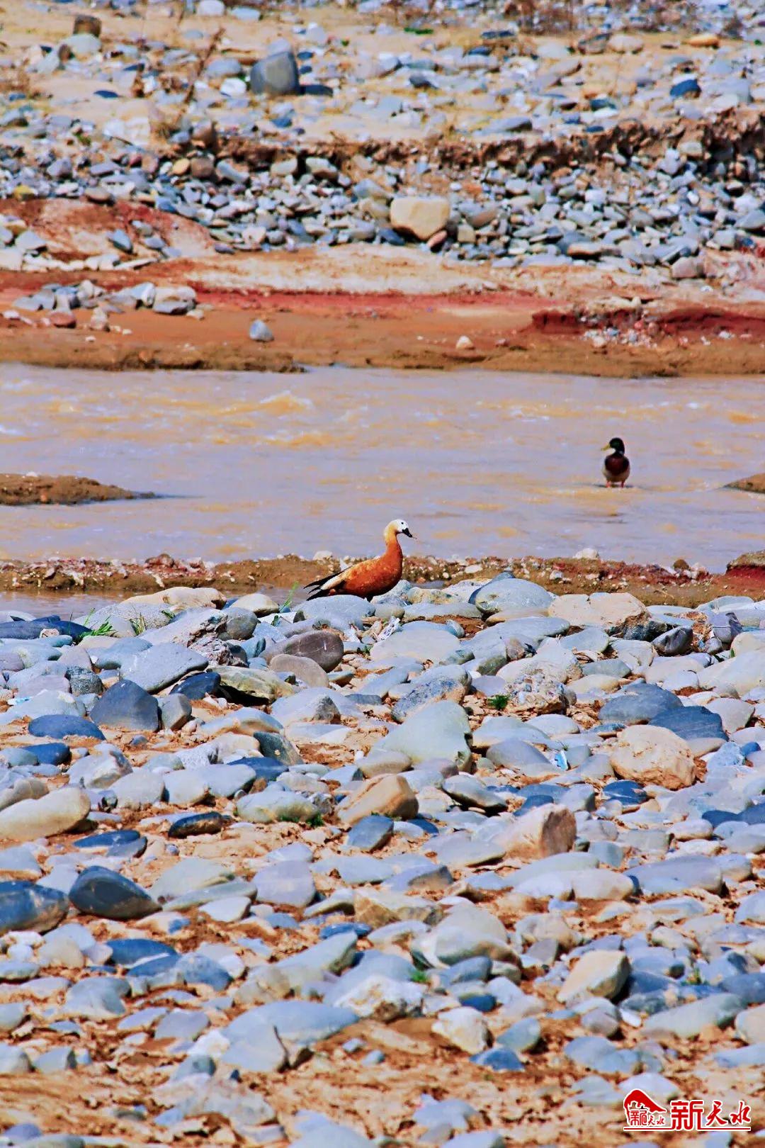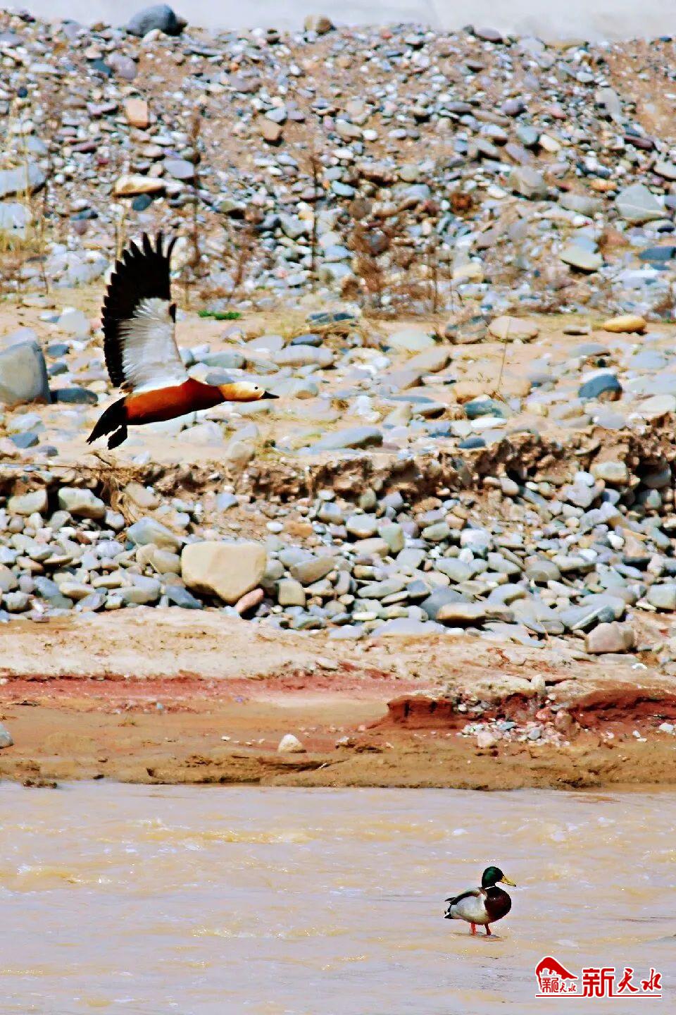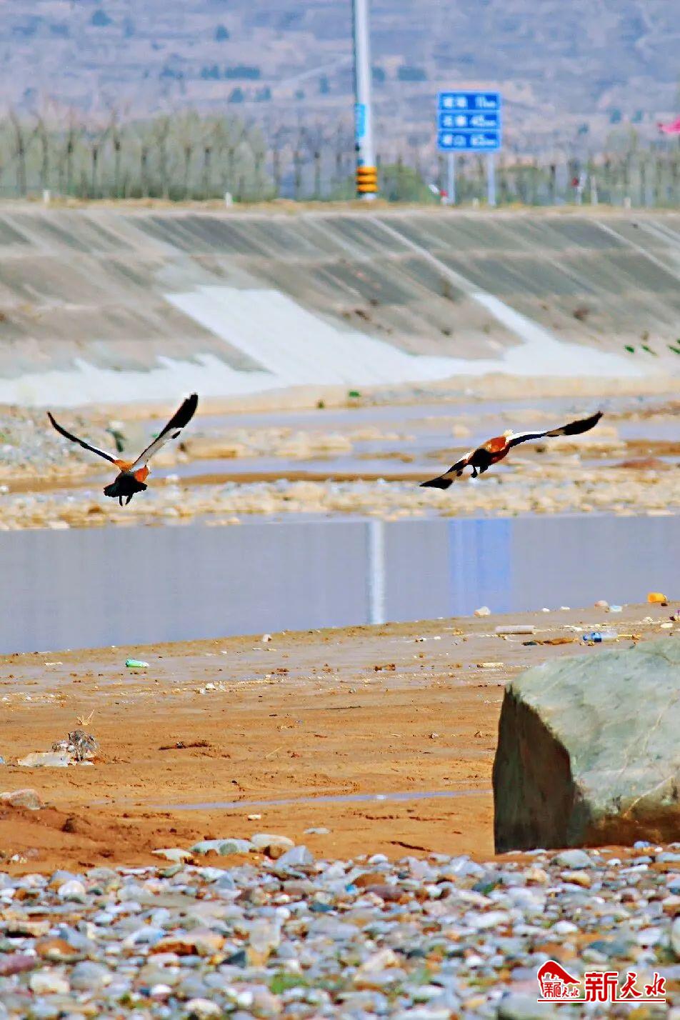 甘谷渭河治理成效显著,引来无数水鸟栖息