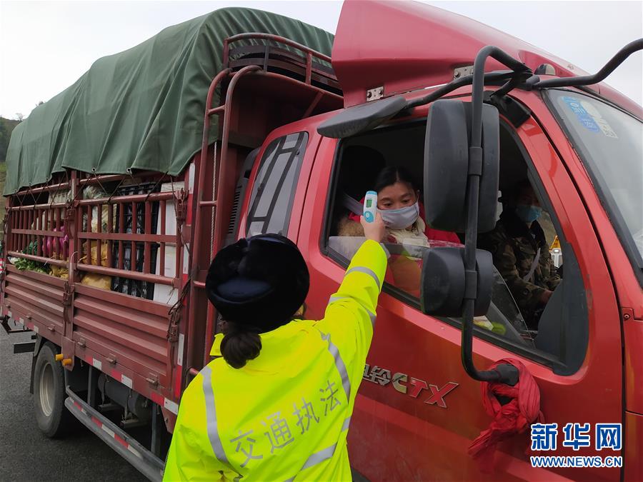四川省交通运输厅高速公路交通执法第五支队雅康大队队长强薇在雅康高速公路上进行防疫检查(2月1日摄)。 新华社发