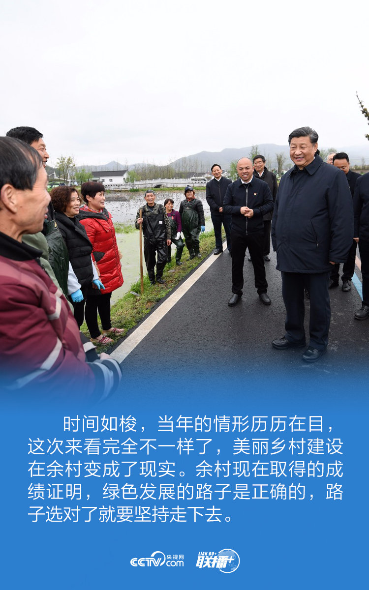 第二天,习近平的身影又出现在安吉县天荒坪镇余村,了解该村多年来践行“绿水青山就是金山银山”理念,推动绿色发展过程中发生的巨大变化。离开余村后,习近平又前往安吉县社会矛盾纠纷调处化解中心调研,了解基层矛盾纠纷调解工作情况。