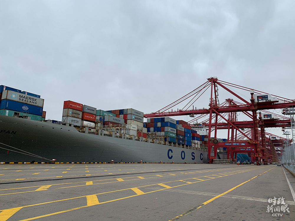 △宁波舟山港率先恢复生产,保持国际供应链畅通,积极应对和化解疫情对货物航运的影响。(总台央视记者许达、段德文拍摄)