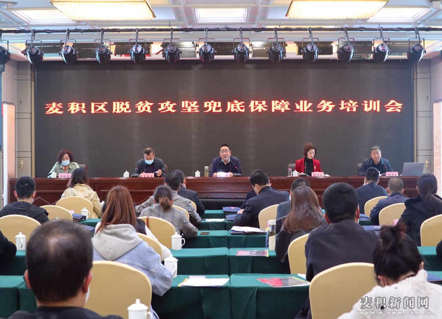 新天水讯 据麦积区融媒体中心消息 近日,麦积区民政局组织召开全区脱贫攻坚兜底保障业务培训会。副区长温建军出席会议,各镇、街道分管领导、民政助理员、社会购买服务人员、民政局班子成员及业务骨干参加会议。
