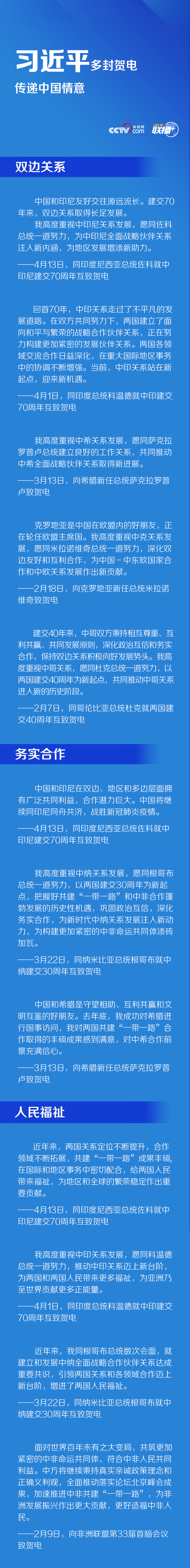 习近平多封贺电传递中国情意