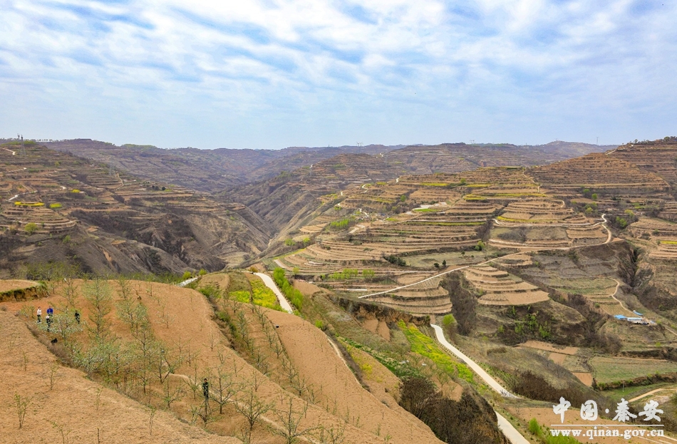 新天水讯 据秦安县融媒体中心消息 茅檐长扫静无苔,花木成畦手自栽。人间四月,步入王窑镇,处处是风景,入目皆清爽。整洁漂亮的村容村貌,宽敞整洁的硬化道路, 茁壮且富有生命力的行道树格外引人瞩目。放眼望去,远处绵延的青山,头顶的蓝天白云与道路两旁早春粉嫩初绽的樱花、成片金黄色的油菜花等花色点缀相映,共同构成了一幅有“颜值”更具“魅力”的田园画卷。