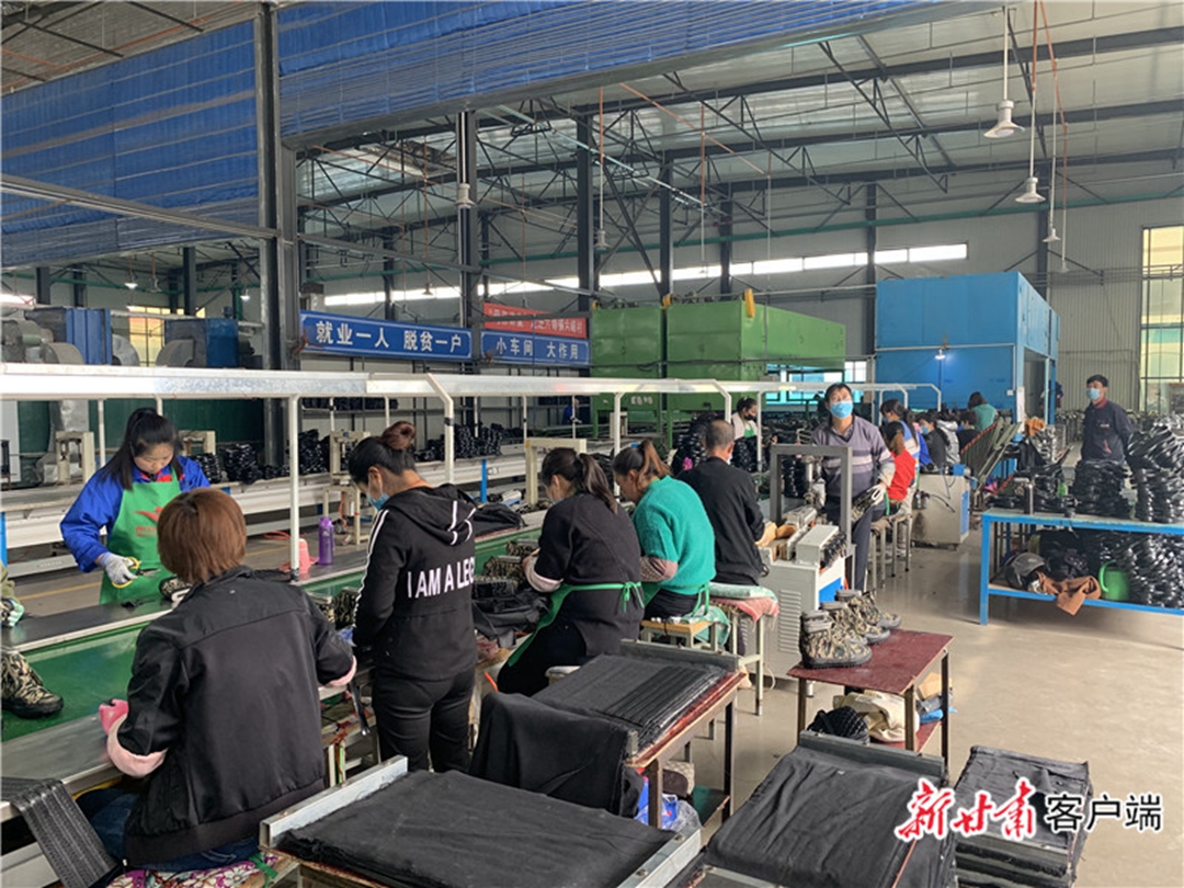 “2019年6月我到恒远鞋业有限公司的生产车间上班,吃住都在公司,一个月近3000元的工资,生活总算有了着落。”王金兰说,去年苹果价格低,要不是自己端上了生产车间的“铁饭碗”,孩子的学费、家里的开销都不知道从哪里来。 在甘谷县,像王金兰这样的贫困户还有很多,他们或因家中有老人、病人需要照顾,或因年龄偏大,或因从事农业生产,不能长时间在外就业。基于此,甘谷县结合县内劳务资源优势,打造了一批服装生产、麻鞋编织、鞋类制作、毛衣缝盘、电子设备装配等优势产业扶贫车间,通过实施产业培育、技术升级、产业链延伸等措施,吸纳当地贫困劳动力就近务工,做到顾家、脱贫“两不误”。