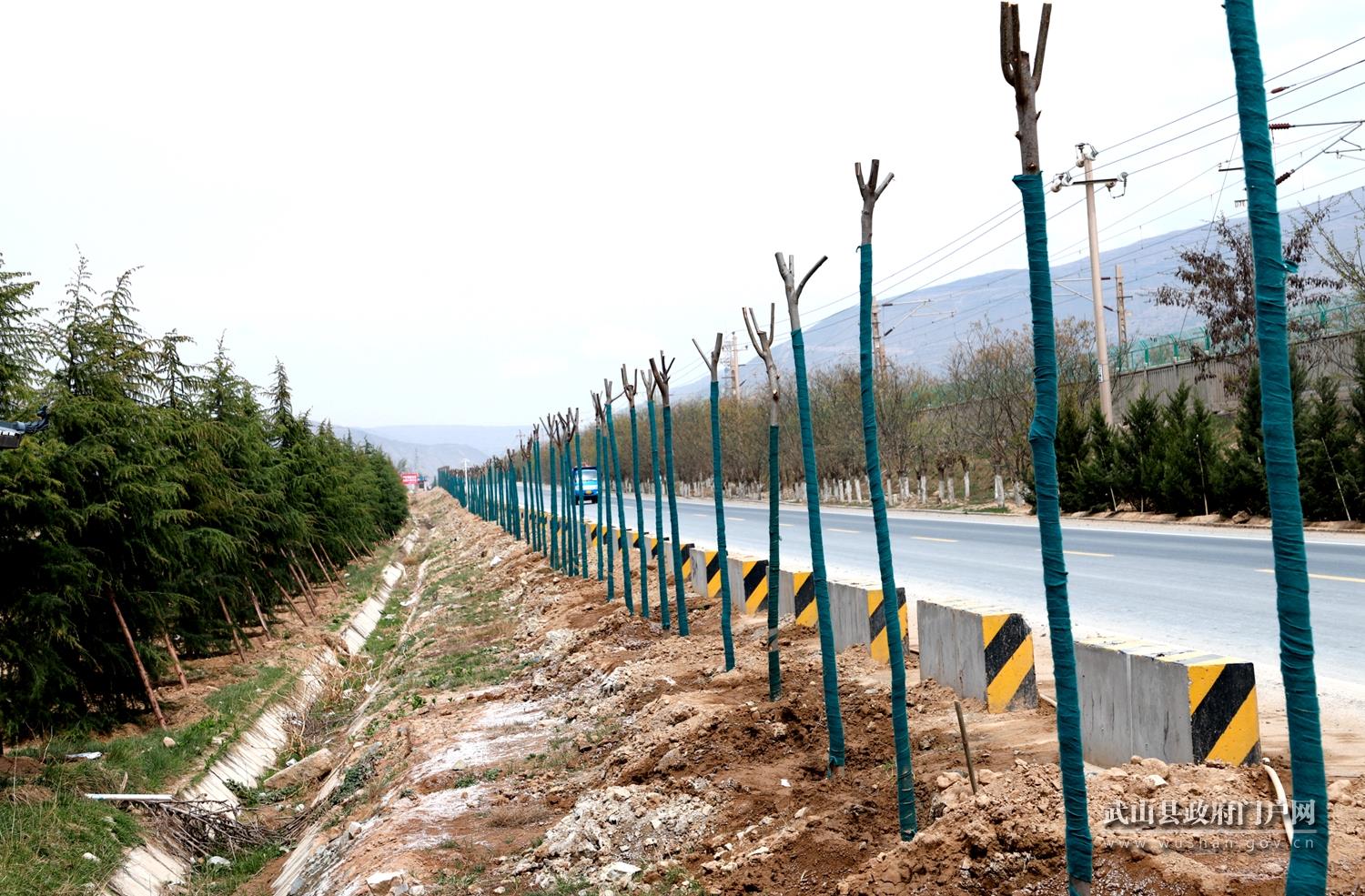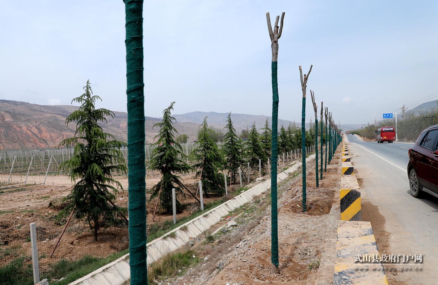 武山县将重点公路绿化建设作为今年绿化重点工作,强力推进重点公路环境整治、建设工作,对辖区内225省道(杜楞至陇西直沟段)、城沿路的40公里开展绿化提升工程,夯实绿色生态建设成效,筑牢生态屏障。如今,225省道和城沿路40公里“美颜”度大大提高,国槐、云杉、塔柏等高规格树种让沿线村庄实现“房前红花房后绿树”。