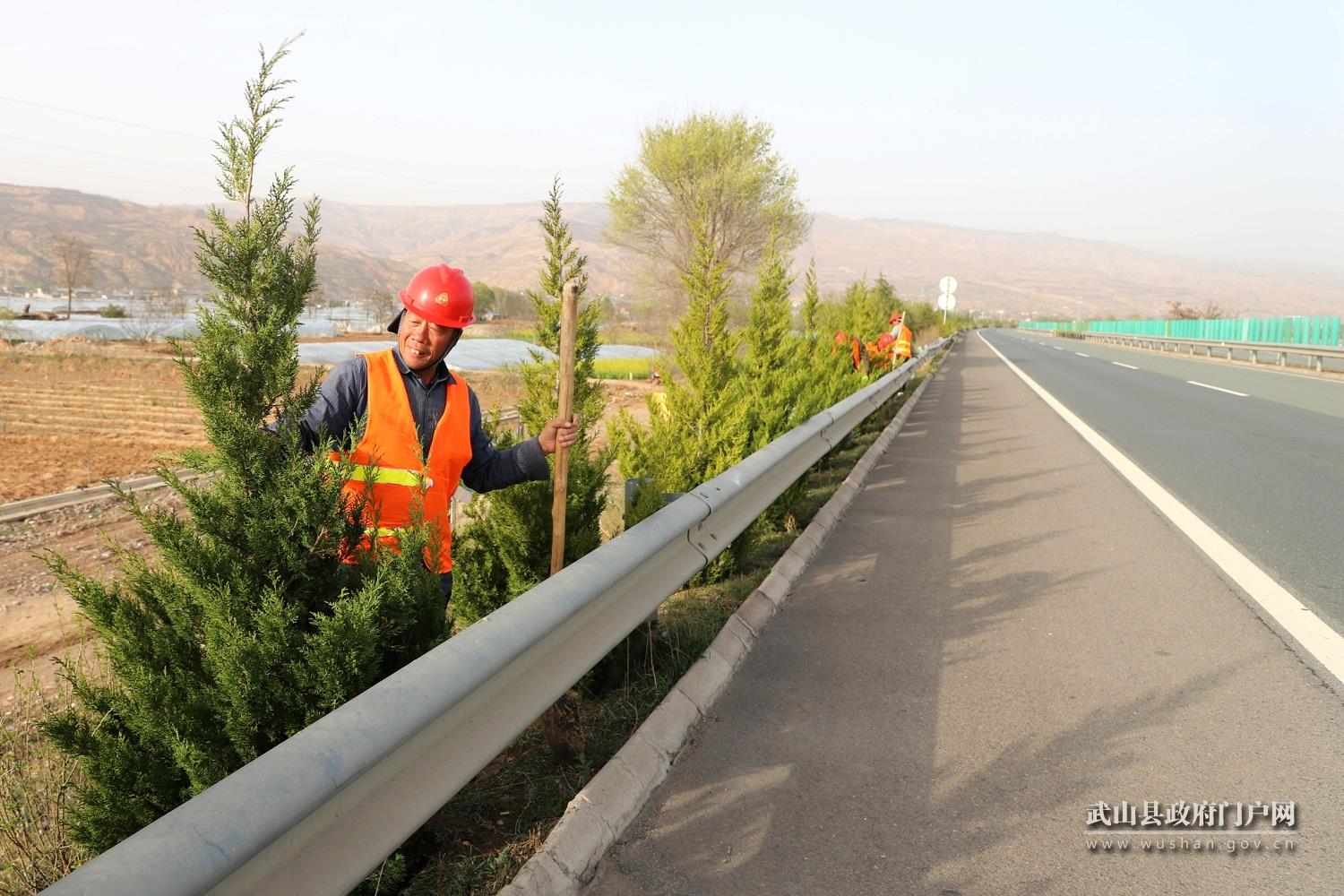 人间最美四月天。这个时节,沿着天定高速公路武山段一路东行,道路两旁苍翠浓绿树木像一个个身姿挺拔的卫士,拱卫在道路两侧,放眼远望,公路南北两山郁郁葱葱的林木也格外显眼。今年,武山县以打造天定高速沿线“三季有花、四季长青”的花海林地为目标,统筹山、水、田、林、路、村综合治理,持续推进大规模国土绿化行动,着力打造天定高速公路“绿色长廊”,在天定高速沿线高标准完成造林5.33万亩。