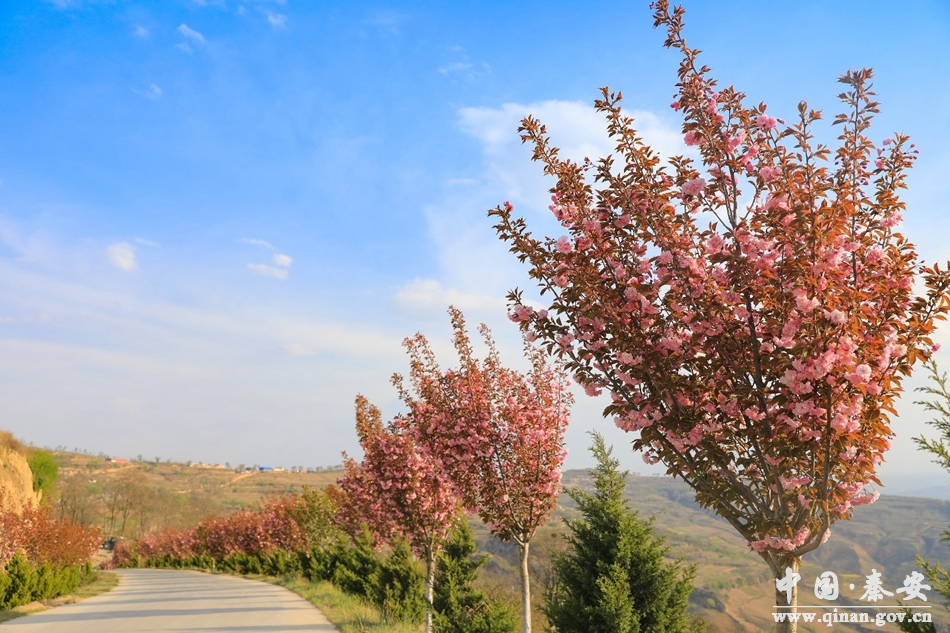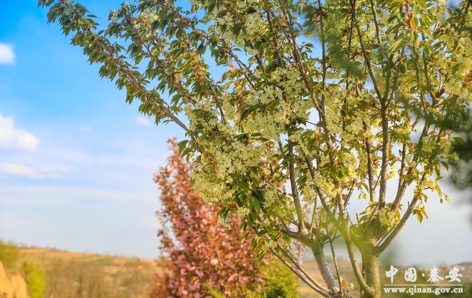 新天水讯 据秦安县融媒体中心消息 眼下,在叶堡镇钱坪梁上,三千余株樱花竞相盛开,张眼望去,柔似轻梦,绚如云霞。