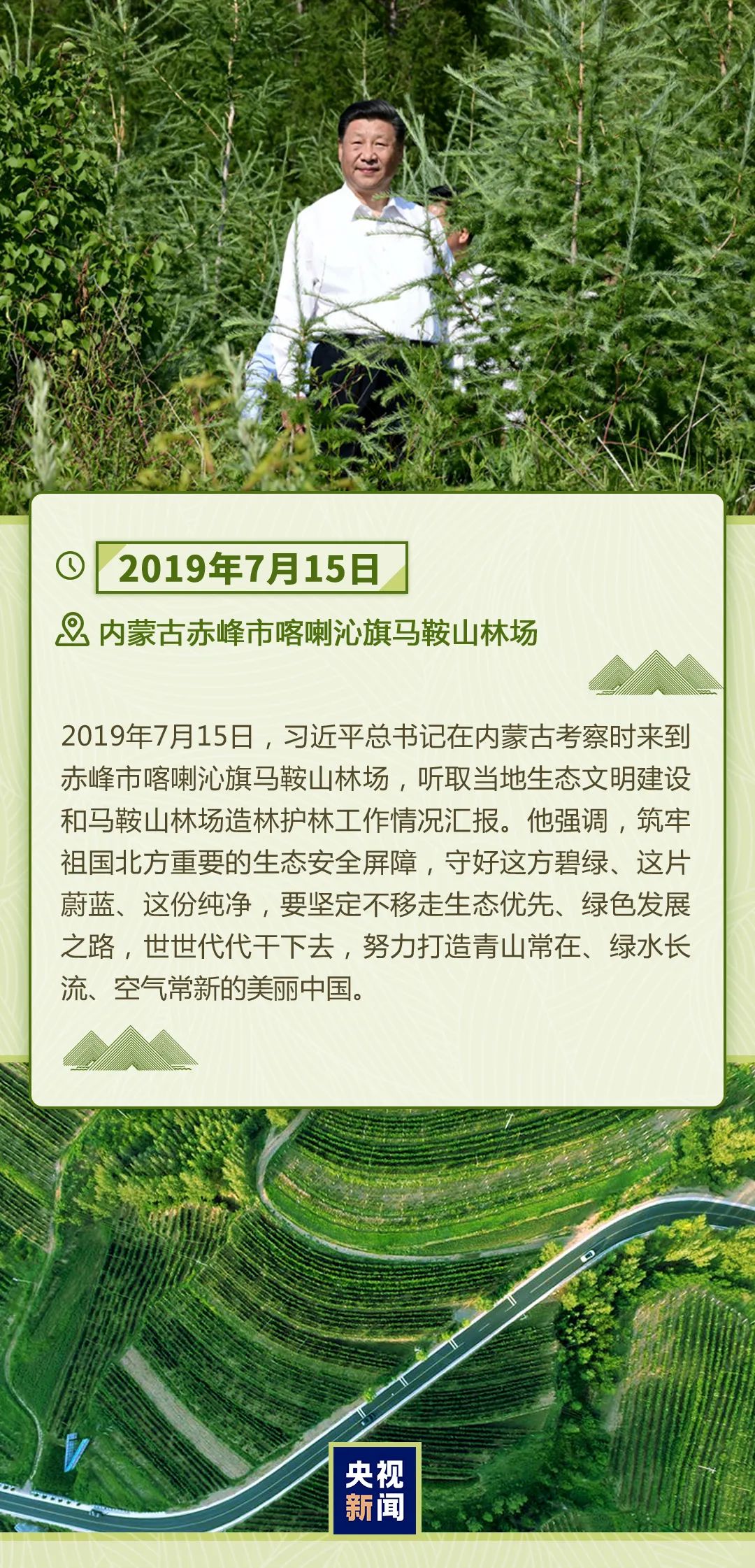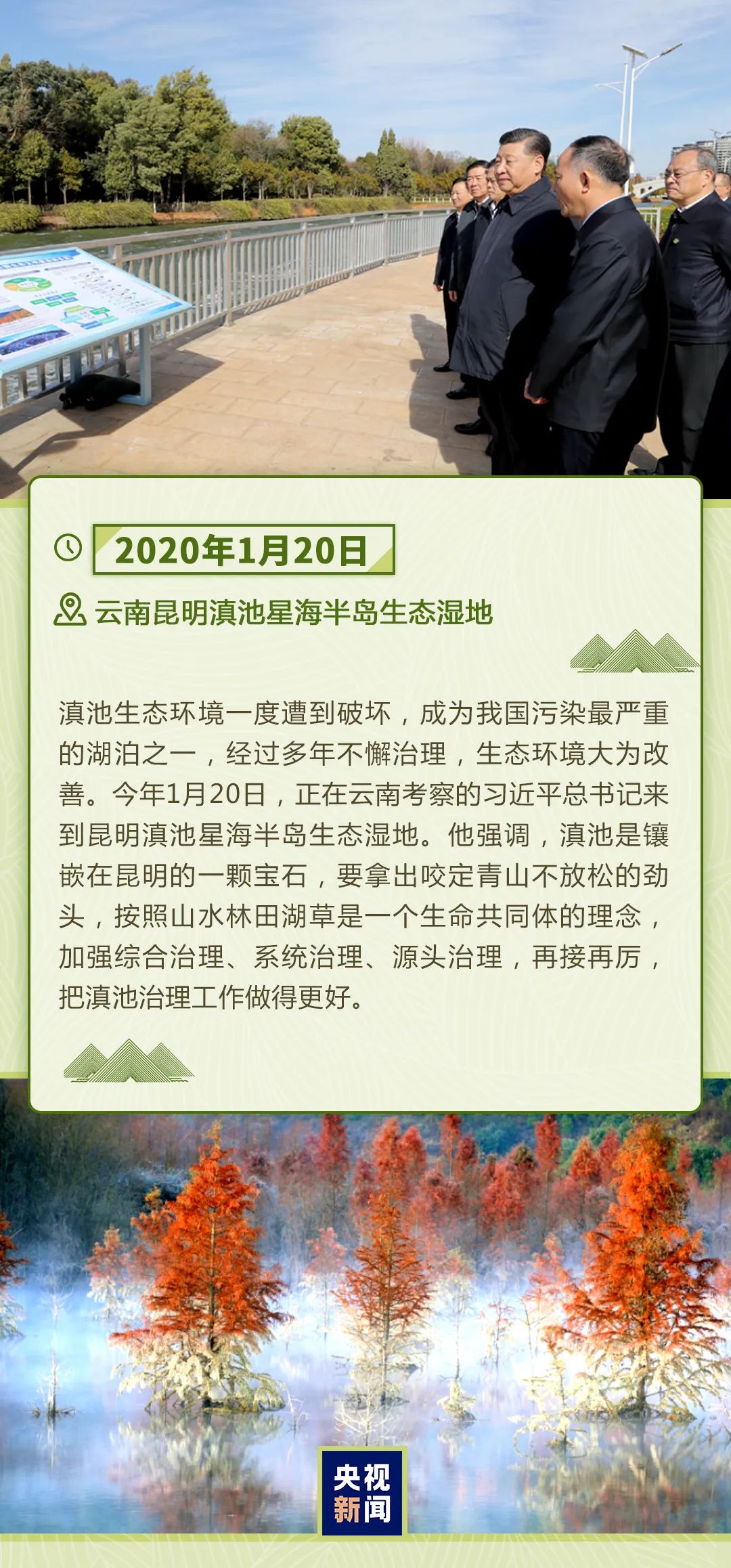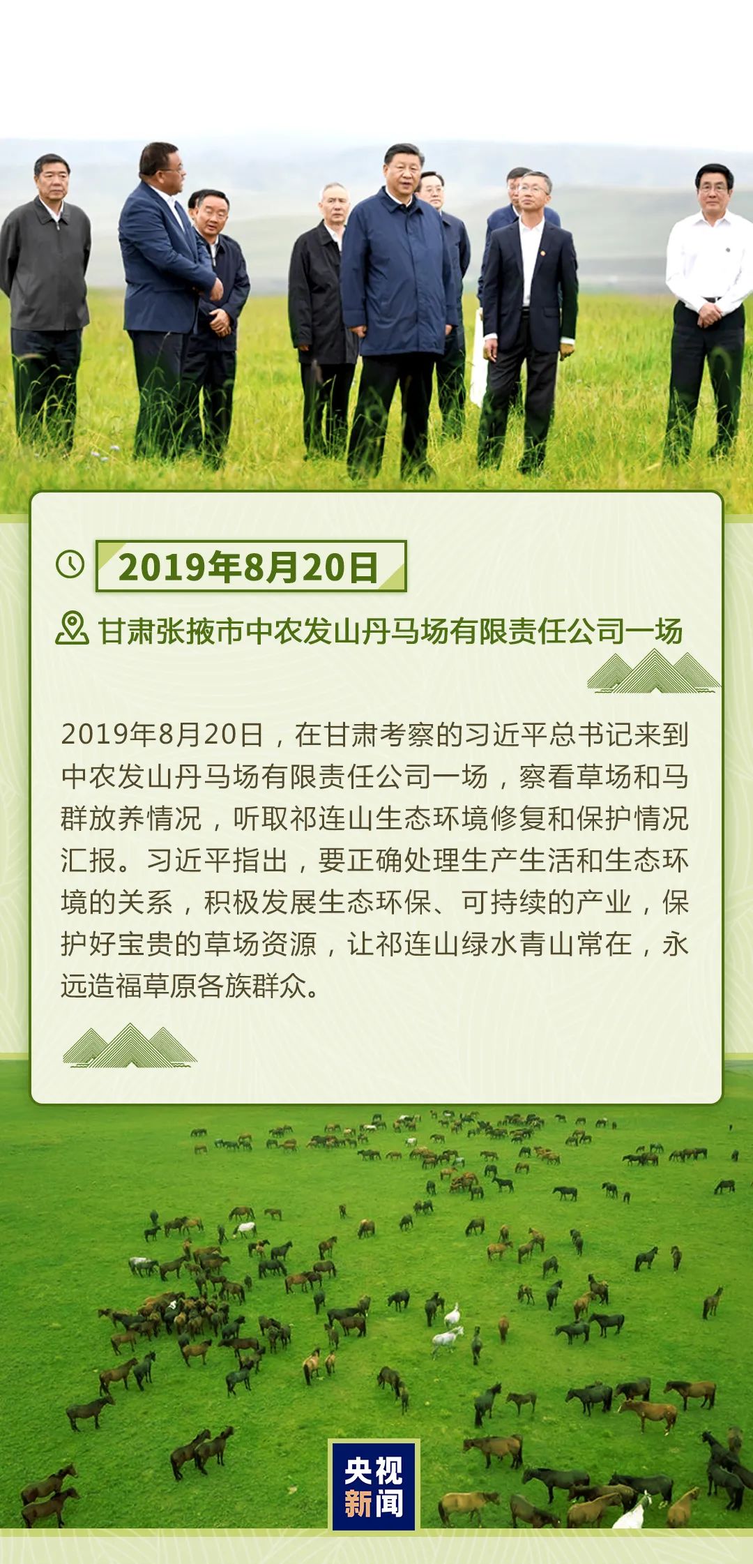 内蒙古喀喇沁旗马鞍山林场、甘肃祁连山下山丹马场、河南郑州黄河国家地质公园、云南滇池星海半岛生态湿地、浙江杭州西溪国家湿地公园、陕西秦岭牛背梁国家级自然保护区……一年来的几次地方考察,习近平总书记深入生态保护一线,对合理利用、友好保护生态作出重要指示。