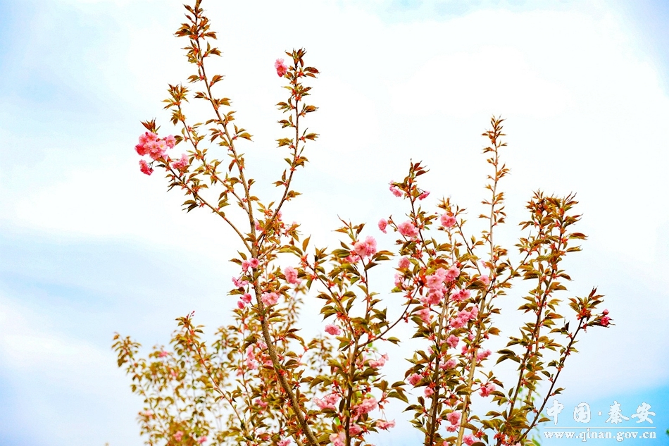 新天水讯 据秦安县融媒体中心消息 经过多年的倾力打造,秦安县王窑镇小湾河沿线的樱花大道已初具规模。眼下,这里樱花已经进入观赏季,道路两旁,一朵朵、一串串,娇艳欲滴的樱花成了一道亮丽风景线。