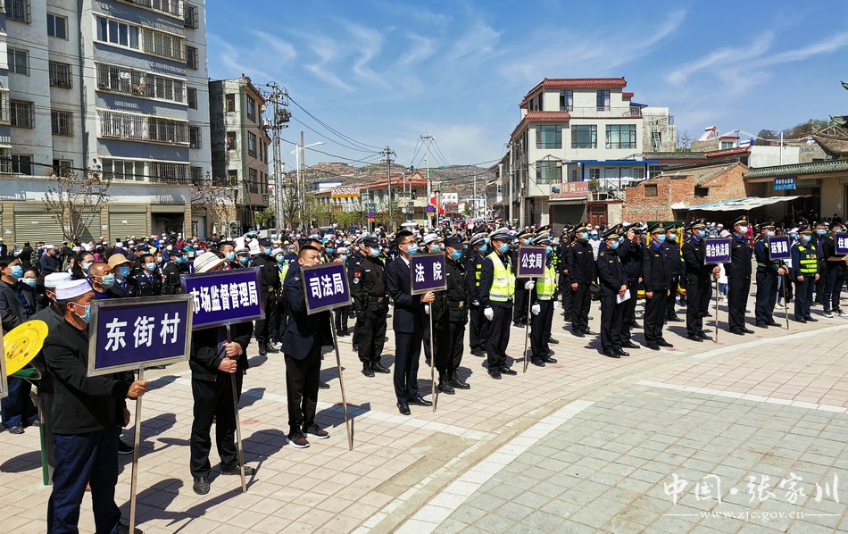 县委常委、政法委书记高建平出席会议并讲话,县政府副县长、县公安局局长刘正顺主持会议。县法院、县检察院负责人,全县政法系统干警、东城片拆违治乱联合执法抽调单位负责人及抽调干部、张家川镇干部及部分群众代表共计1600余人参加会议。