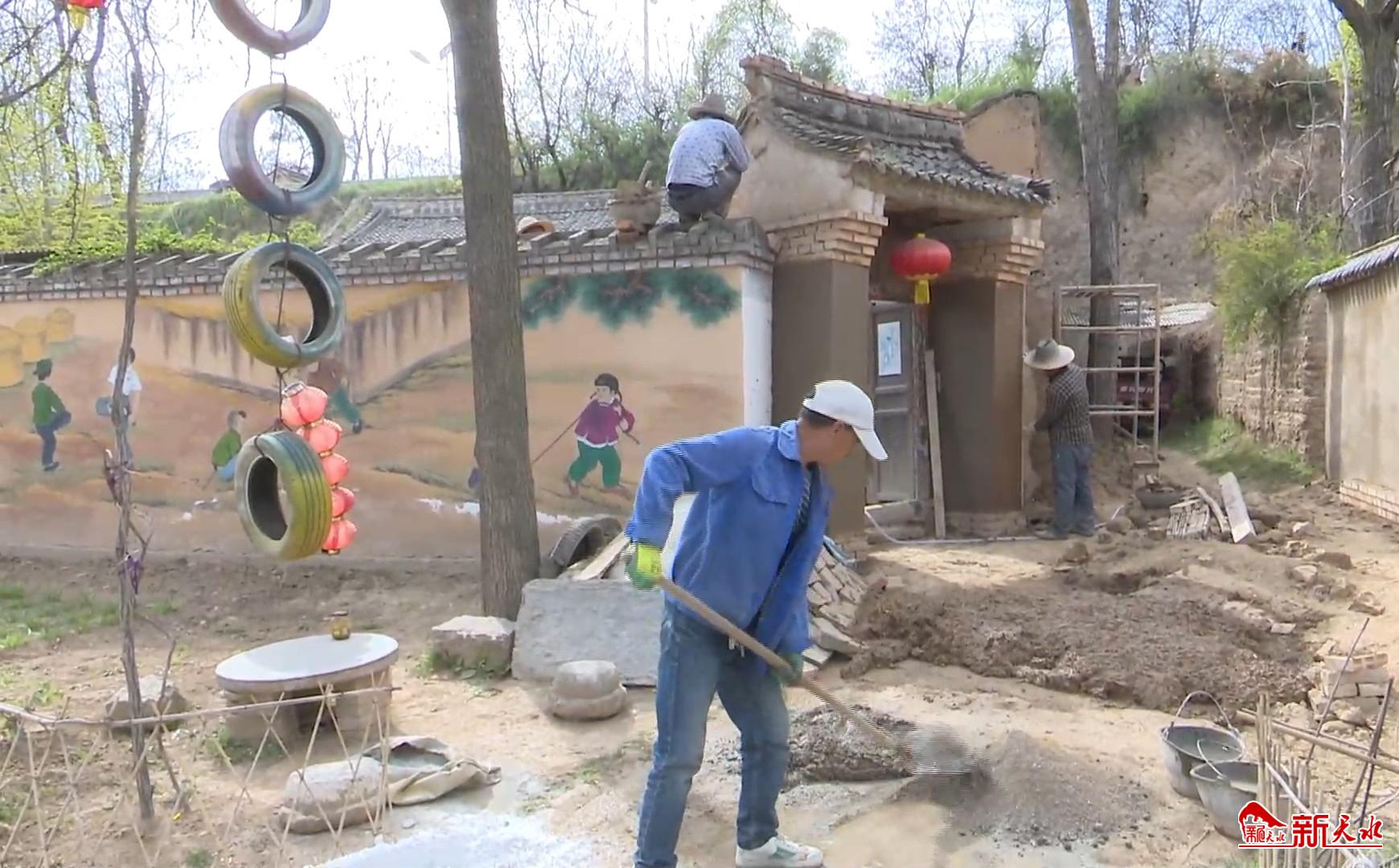 在玉泉镇李官湾村,党员干部正带领村民对危旧房屋进行拆除,对部分破损墙面加固维修。