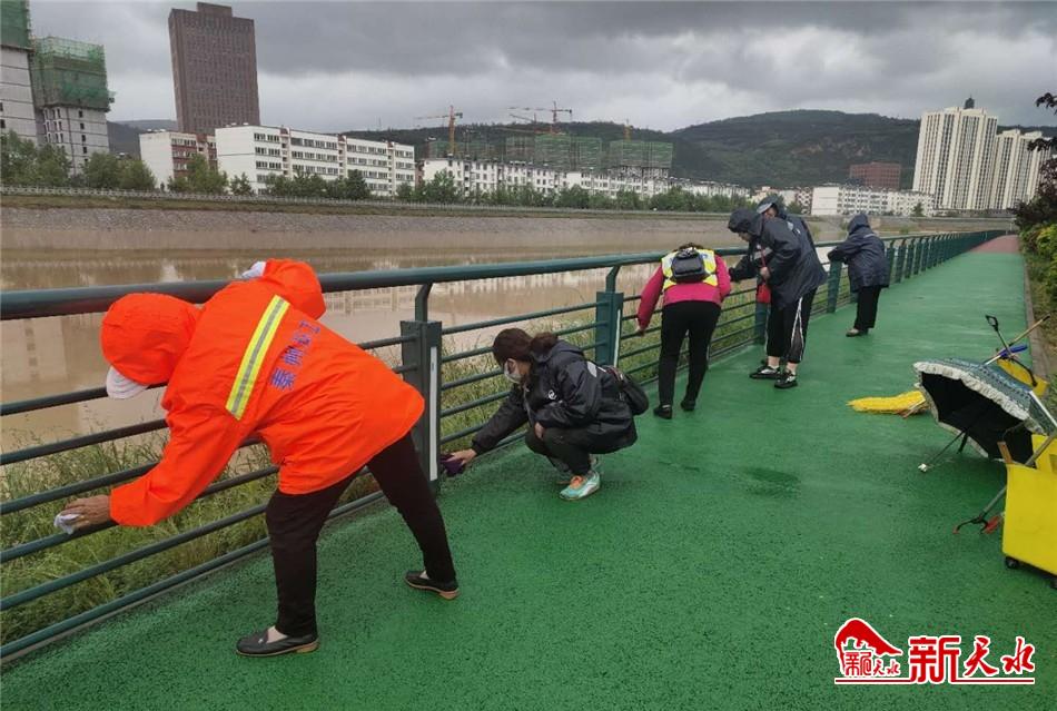 在积极清淤排水的同时,秦州区环卫治理中心还调度冲洗车、清扫车等机械车辆对雨后路面进行巡回清洗,确保“路见本色”。对中华东西路步行街、天水湖、藉河风情线等城市重点公共区域的隔离栏、护栏座椅、果皮箱等环卫、市政设施进行全面擦洗,确保雨后城市环境卫生焕然一新,提升城市“颜值”。