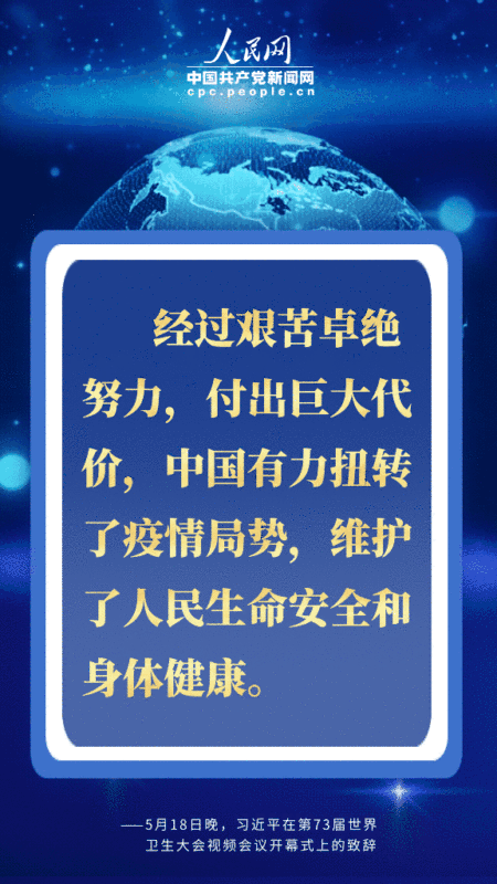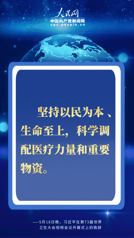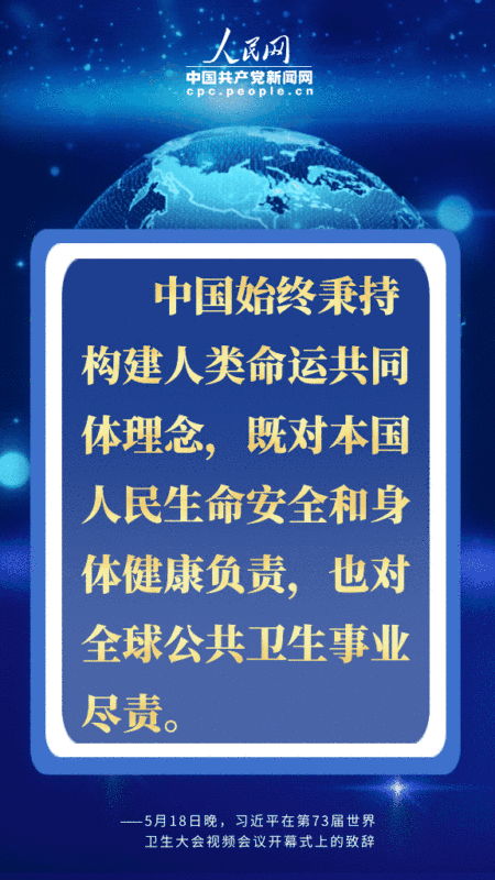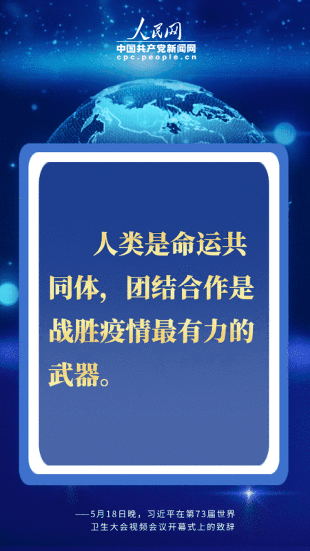 编者按:北京时间5月18日晚,国家主席习近平在第73届世界卫生大会视频会议开幕式上发表题为《团结合作战胜疫情 共同构建人类卫生健康共同体》的致辞。习近平从共同构建人类卫生健康共同体的高度,深刻阐述中国抗疫主张,提出一系列重要倡议,对于提振全球抗疫信心,推进国际抗疫合作,擘画未来全球治理体系,具有十分重要的现实和深远意义。人民网·中国共产党新闻网用四个关键词为您梳理。