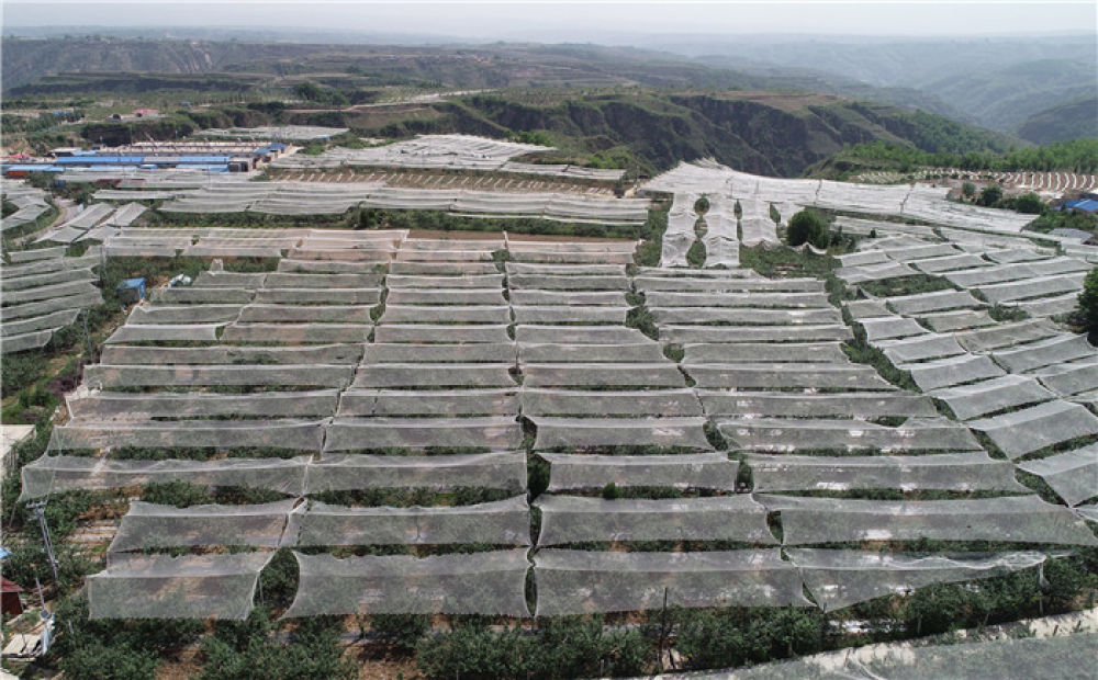 这是陕西省延安市延川县梁家河村山地苹果园(2018年5月24日摄,无人机照片)。新华社记者 邵瑞 摄