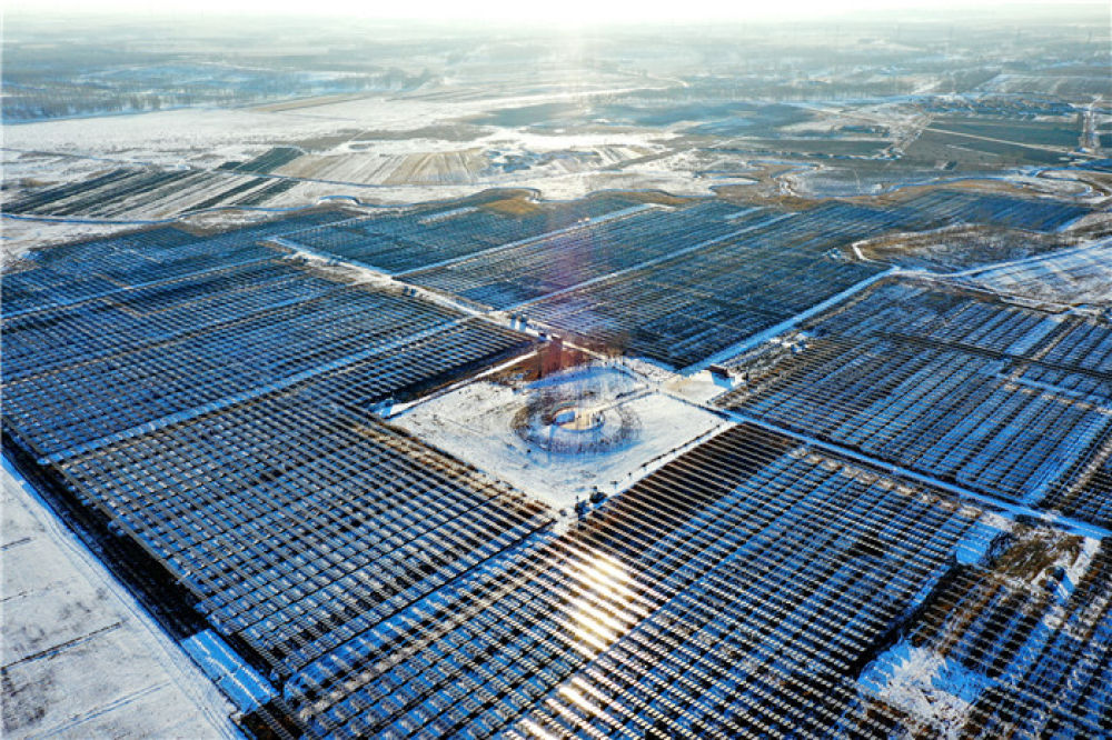 这是河北省张北县德胜村光伏电站(2020年1月3日摄,无人机照片)。新华社记者 牟宇 摄