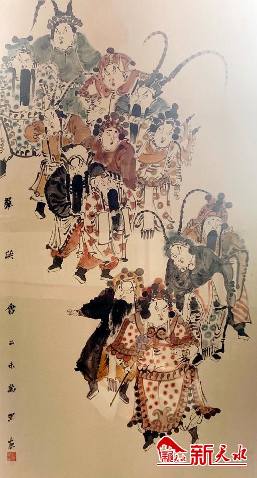 洪万里的人物画,诙谐幽默、栩栩如生,令人忍俊不禁。其艺术风格带有浓厚的传统绘画痕迹,但艺术表现形式却又颇似漫画,充满传统人物画所没有的现代感,更符合大多数现代人的审美趣味。洪万里喜欢从《山海经》《水浒传》这样的传统名著选材,再运用自己炉火纯青的绘画技法重新进行诠释。所以他的人物画总给人一种“时空错乱”感——明明题材、背景、技法都充满传统痕迹,但欣赏者却总觉得似曾相识、并不陌生。洪万里以他自己独有的形式,对传统文人画和文人趣味进行了继承——那就是把这种文人趣味赋予时代感,让传统文人画不再“传统”。