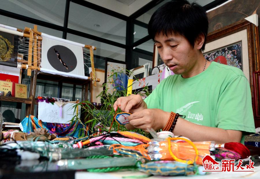 来到刘云帆的工作室时,他正埋头赶制准备发往北京的一批香包,身后复古置物架上的香包更是琳琅满目、鲜艳喜庆,映衬着他的笑容:“已经做一个月了,好多都已陆续发到青岛、上海、深圳等地,这是最后一批,做完就得赶紧发往北京。”