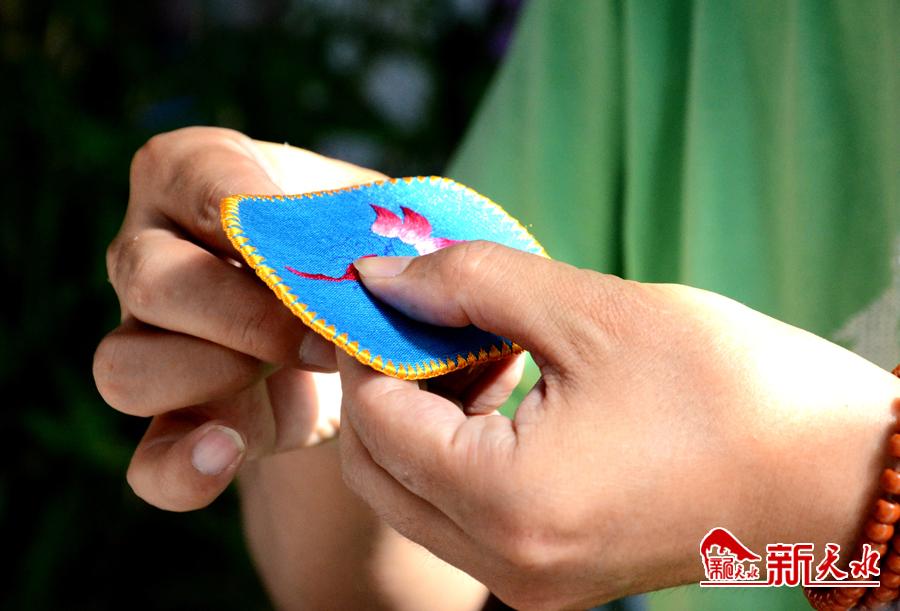 “这款福禄,以中华民族最原始的吉祥物之一的葫芦为大体形状,上面绣以梅花与荷花,不仅寓意五福,而且还蕴含着周易文化与阴阳文化诞生在天水,设计这款香包就是想表达天水的文化之根不能忘。”