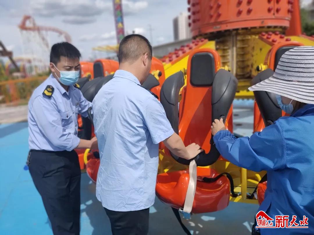 新天水讯 在“端午节”来临之际,麦积区市场监督管理局组织执法人员对全区旅游景点内运营观光车,大型商场、酒店的电梯及马跑泉公园爱马欢乐世界游乐设施进行了安全大检查。