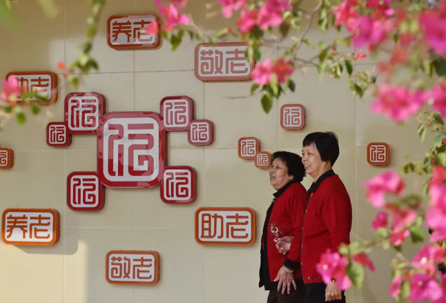老人们在福建省晋江市磁灶镇大埔村敬老院散步(新华社记者宋为伟 摄)