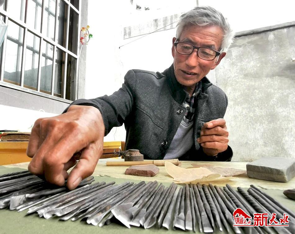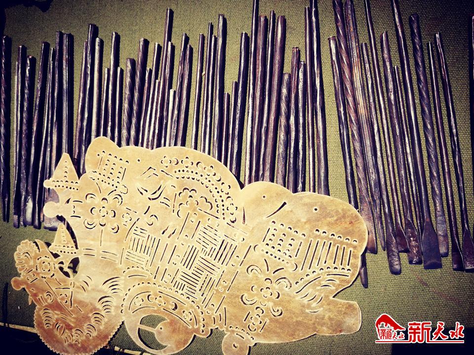 目光所及是70余把大大小小,宽窄不一的刀具。这些刀具都是马天德亲手打制而成,有斜口的、平的、圆的、三角的、花口的。“不同的部位,用不同的刀。”马天德告诉记者,三分手艺七分家什,好的工具是皮影雕刻成功与否的关键。