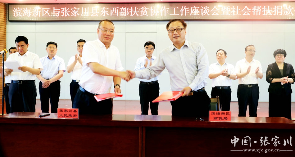 座谈会上,滨海新区副区长夏青林介绍了滨海新区与张家川县扶贫协作工作情况,张家川县委书记陈晰介绍了全县脱贫攻坚及东西部扶贫协作工作情况,部分与会人员作了交流发言。同时,滨海新区与天水市签署了合作共建消费扶贫“天水中心馆”协议,举行了滨海新区社会帮扶捐款仪式。