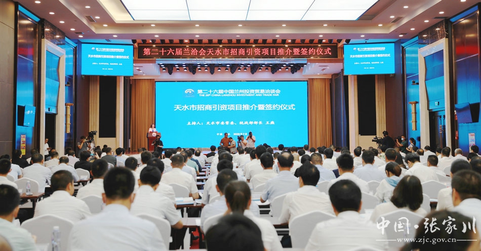 7月3日下午,第26届兰洽会天水市招商引资项目推介暨签约仪式在天水宾馆会议中心隆重举行。张家川县在会上成功签约项目2项,总投资21.6亿元。县委副书记、县长马筱宁,县委常委、常务副县长赵东红及县商务局负责同志及签约企业组团参加签约仪式。