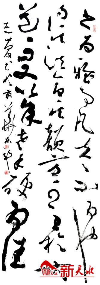 张志庆的行草书,如锥画沙,常有力透纸背的感觉,点画净媚,孤蓬自振,细挹规模,舒徐自然,飞鸟出林,皆似自化。他行草书的神意骀荡,润泽得宜,恰与他的浑厚功底,精神雄健成为了一种互足互补。书中自有定数,全是来自古法,闲花落地,细雨湿衣,那细腻的古意,那娴雅的性情,正是书法所要表达的。张志庆在草书上的飞扬和稳定的状态,是他多年在书法实践创作中体会出来的。其行草书体现了书法的正大气象,虽变化万端,但不离其宗;虽情动其中,但法度森严;虽神情俊逸,但理路清澈。挥洒有致,笔中如抒情诗一样的流彩飞扬,藏巧藏拙,书意里自有一种独有的风神。